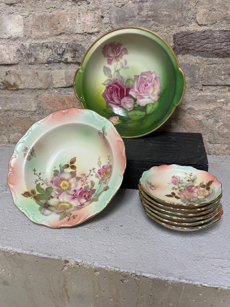 Rose pattern transfer bowl and beautiful floral berry bowl set. From House of Goebel