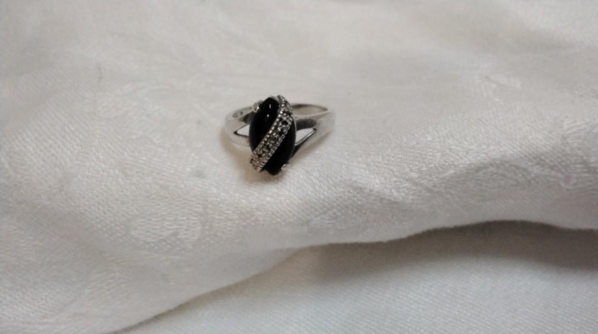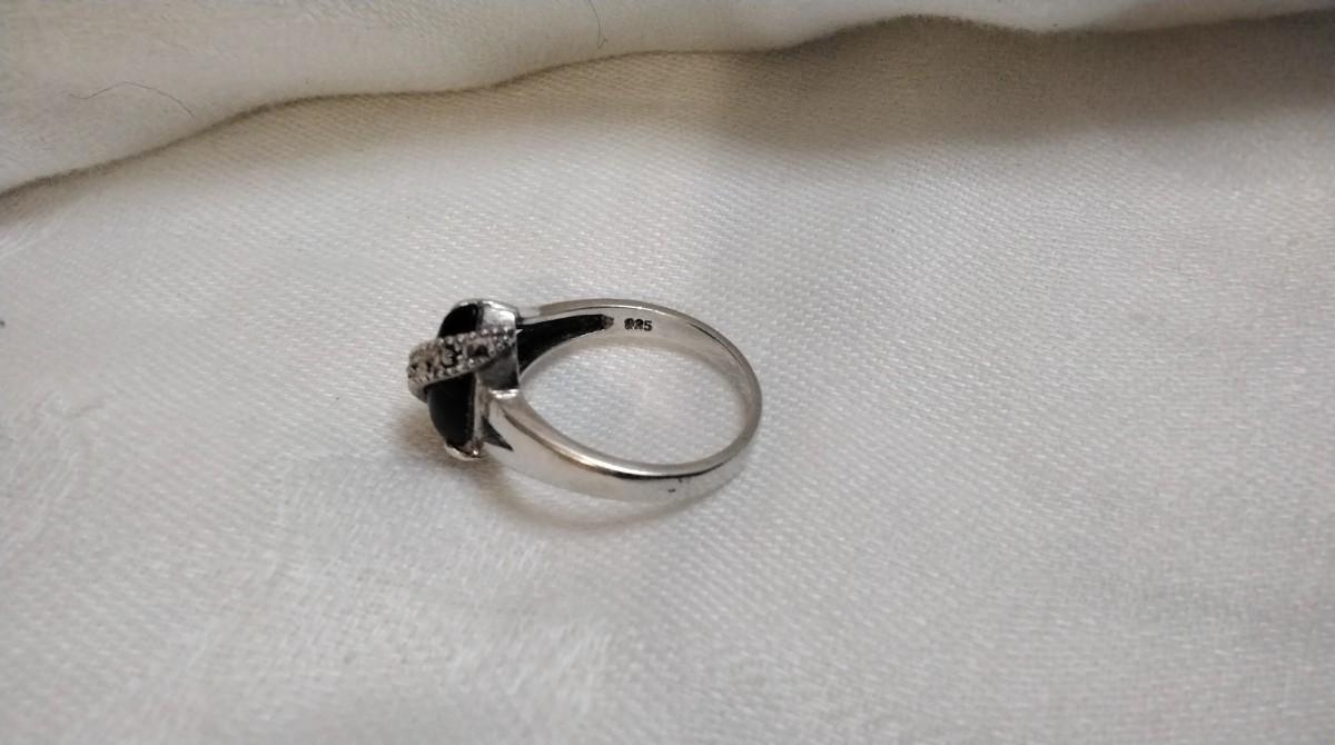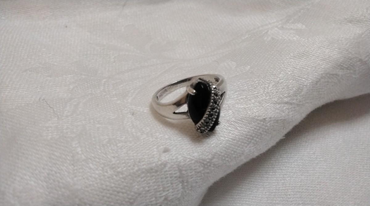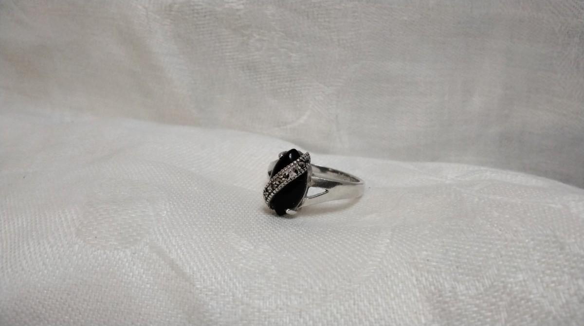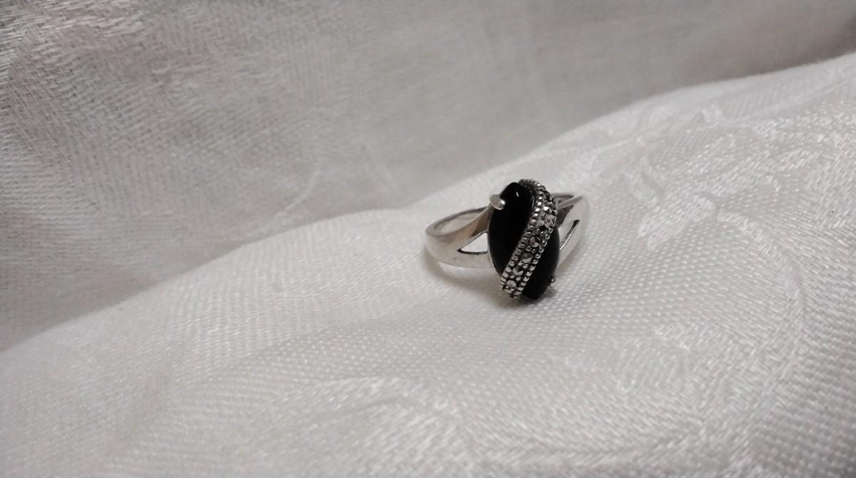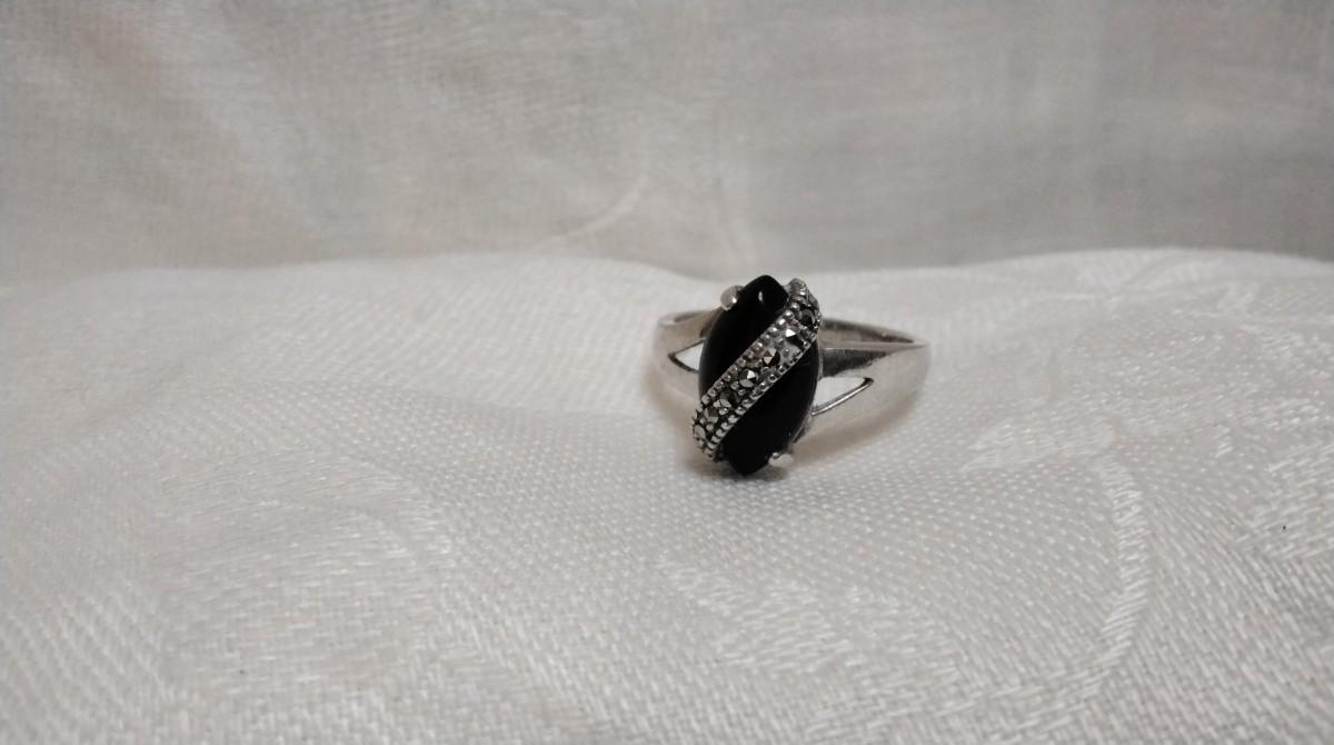 Stunning Black Onyx With Marcasite Sash 925 Ring Size 8