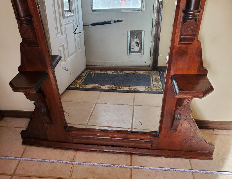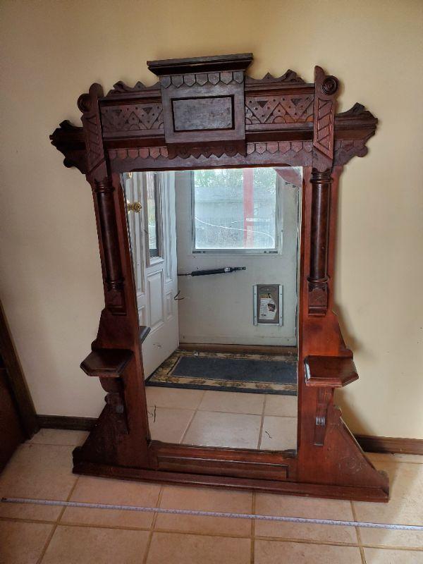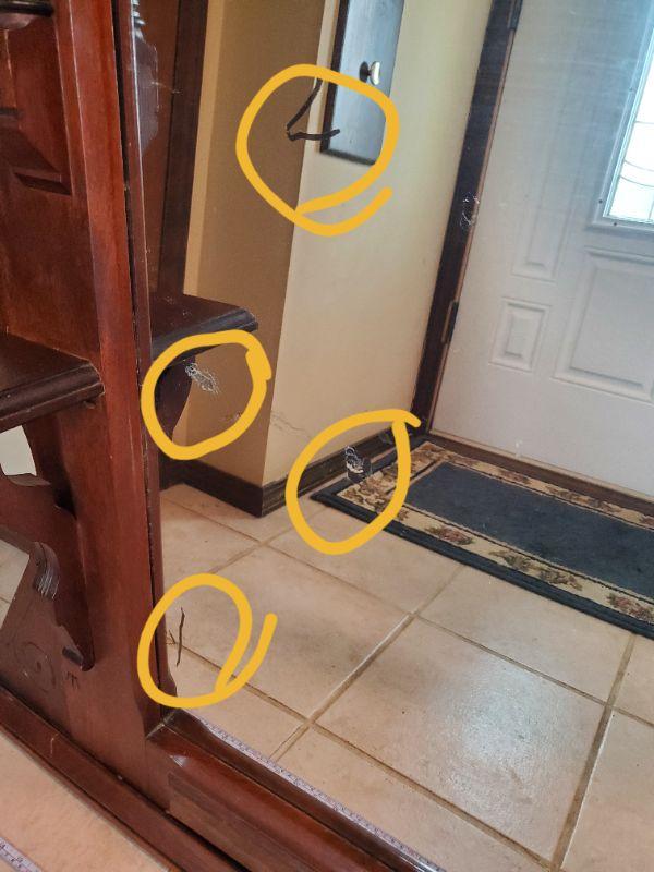 The mirror itself does have some areas that have peeled off the back and can be seen on the front, I circled those areas in the photo. Despite the few flaws, this mirror is beautifully carved and will make an excellent accent piece to any wall!!