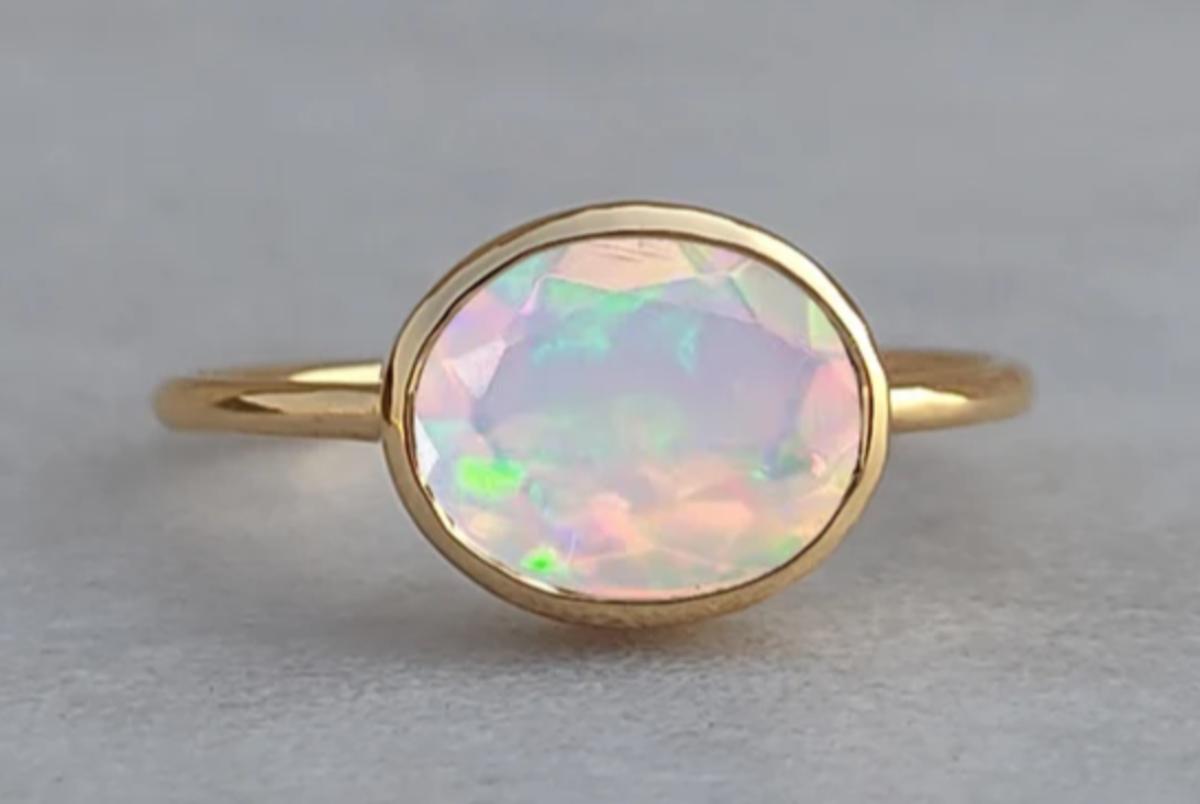 Stunning Faceted Opal Ring 925 Yellow Gold