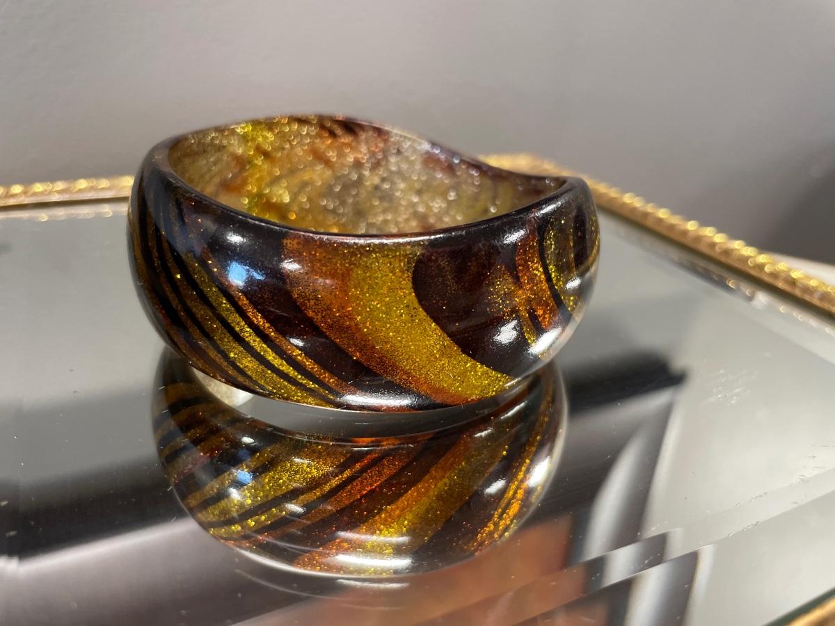 Stunning gold, orange, brown swirl Bakelite bracelet
