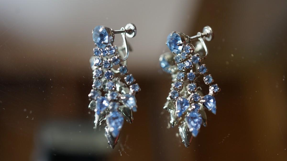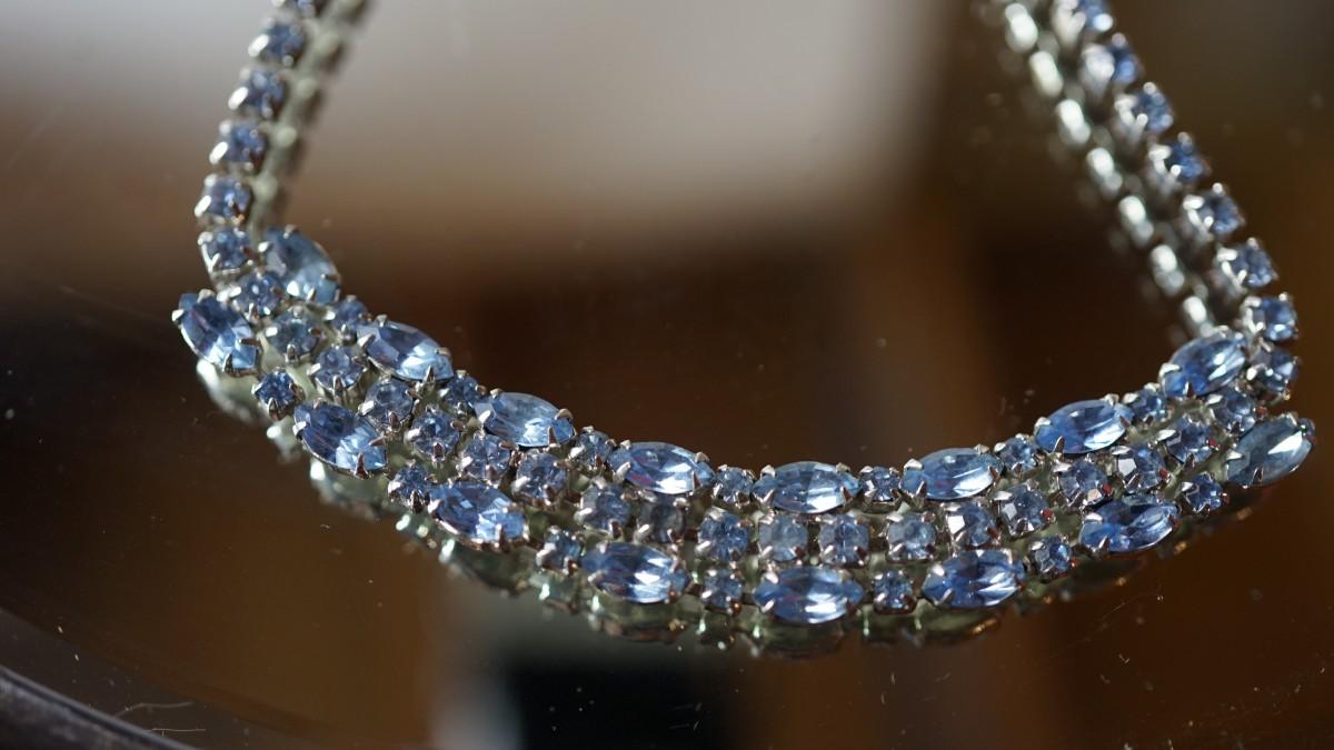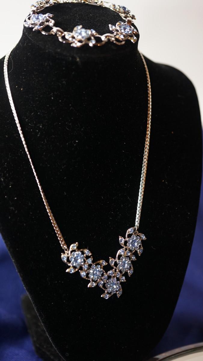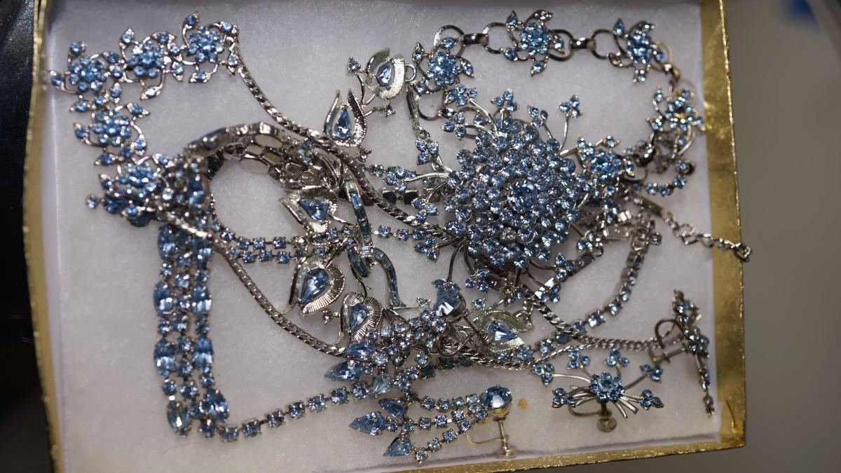 STUNNING GROUPING OF LOVELY POWDER BLUE RHINESTONE JEWELRY SET IN SILVER COLORED SETTINGS