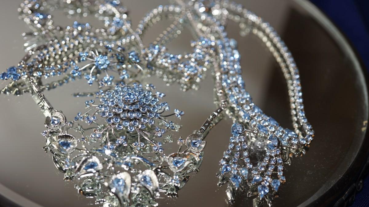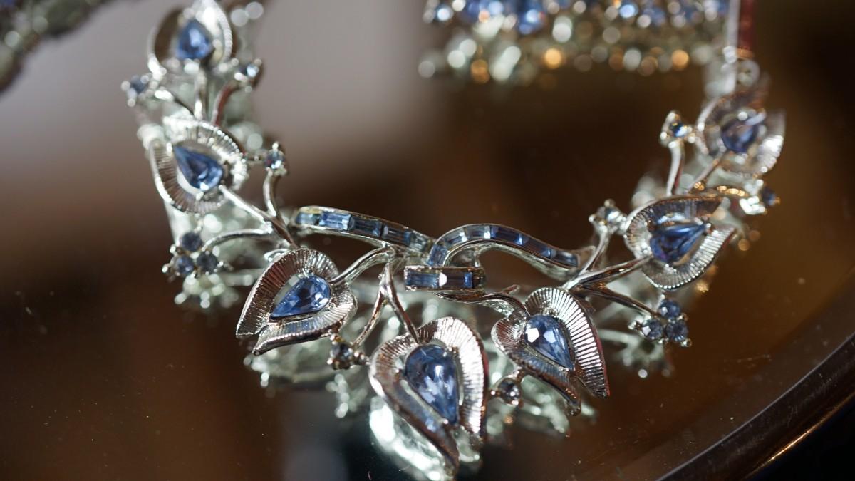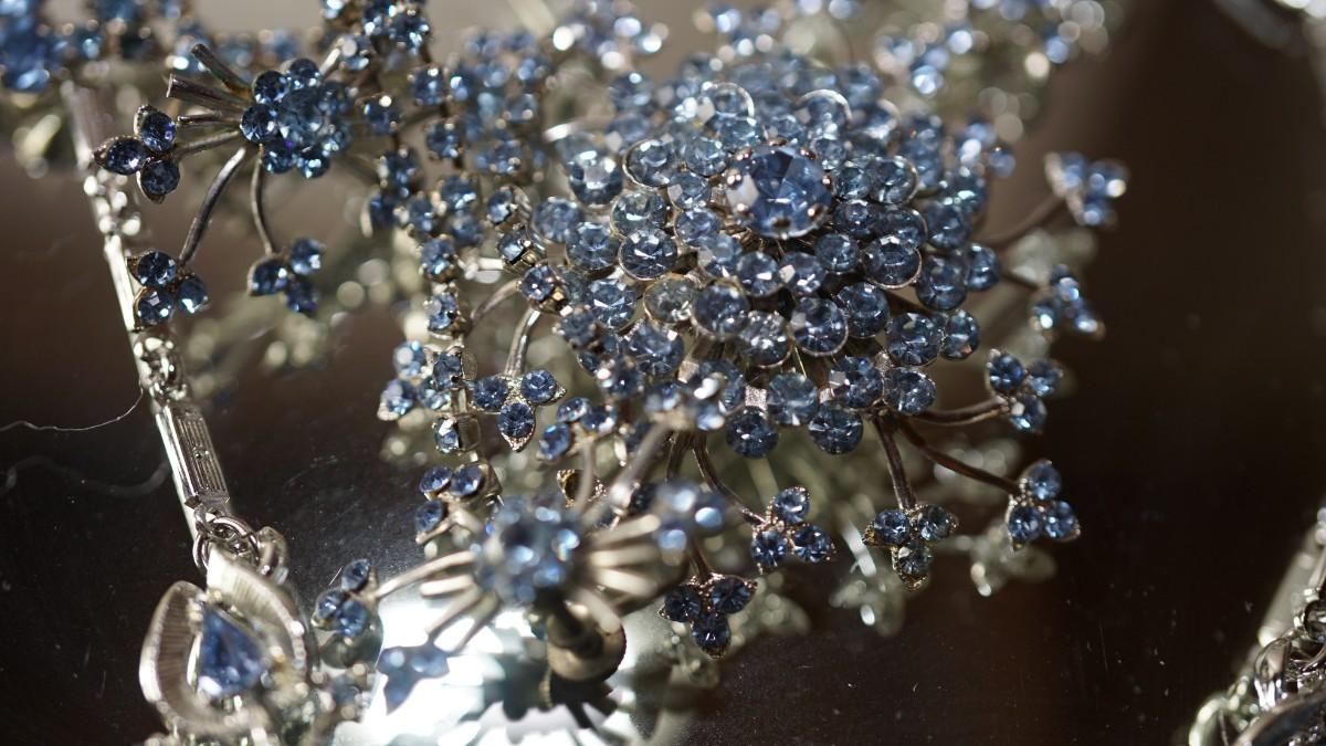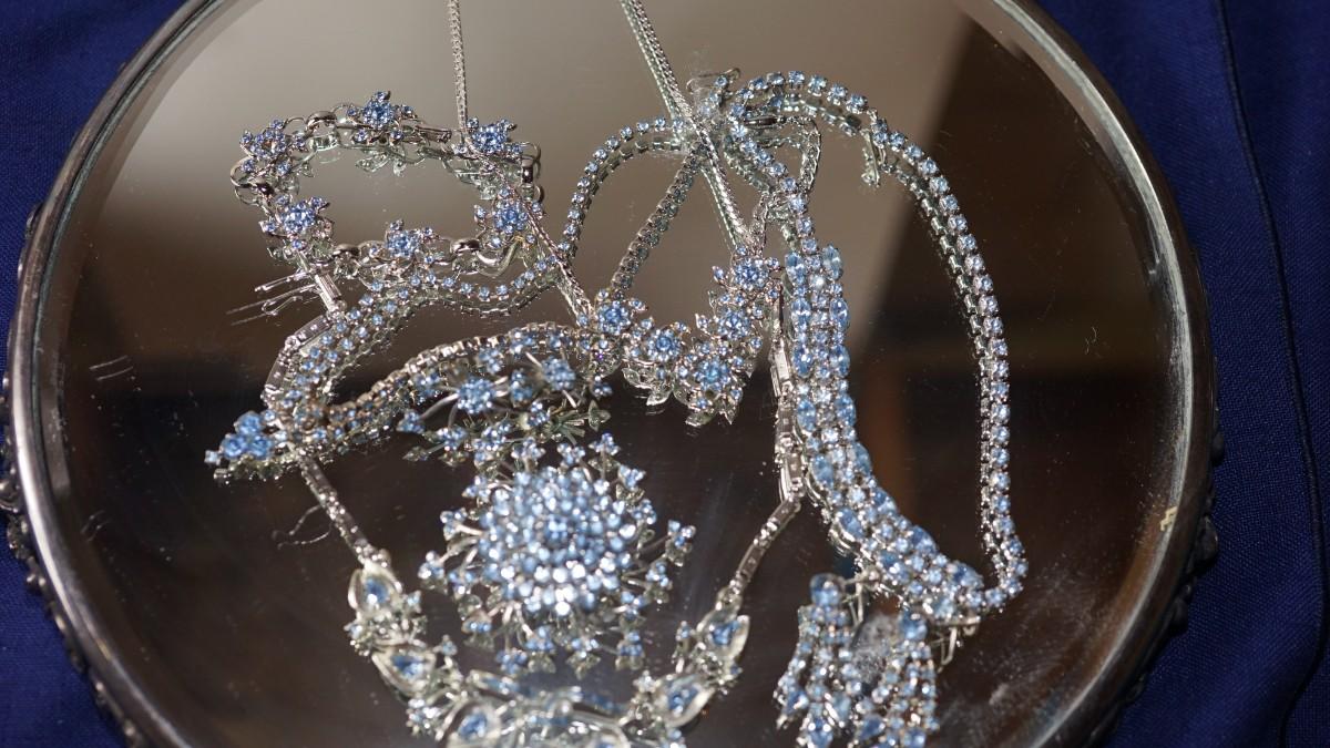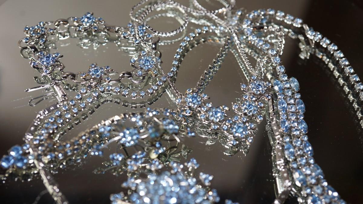 STUNNING GROUPING OF LOVELY POWDER BLUE RHINESTONE JEWELRY SET IN SILVER COLORED SETTINGS