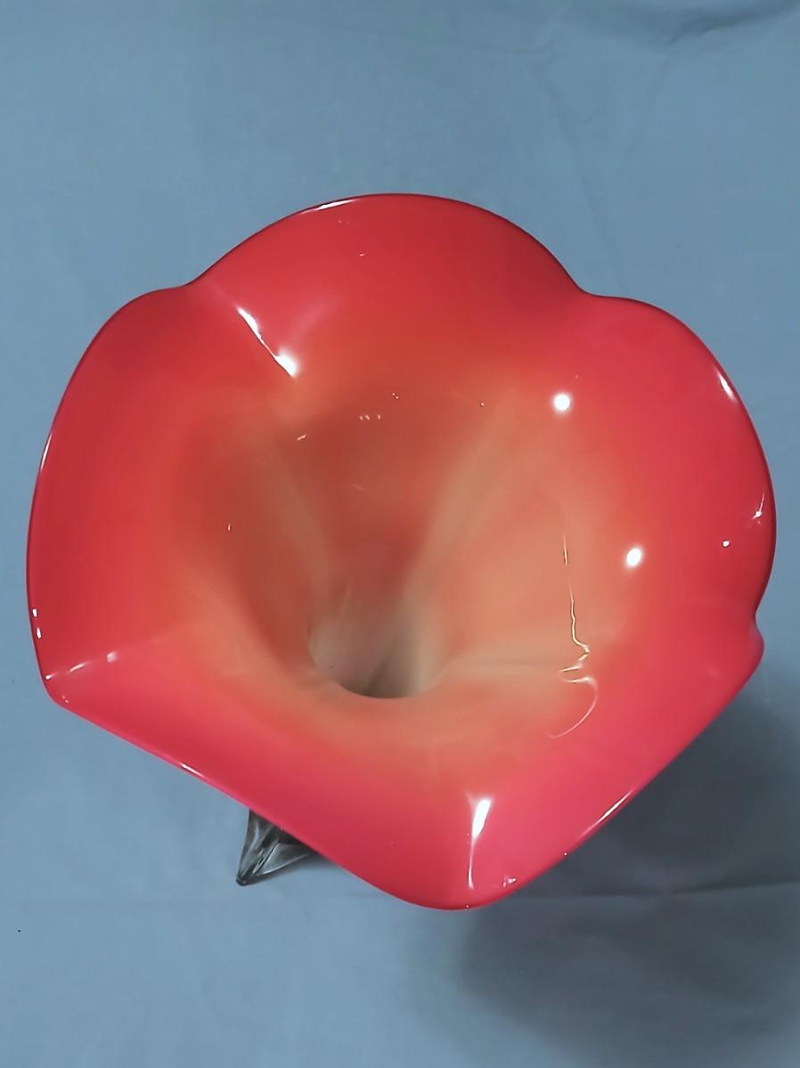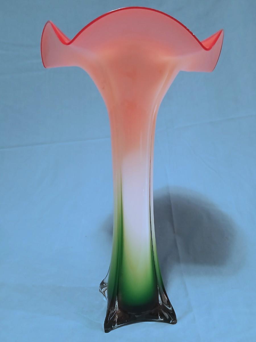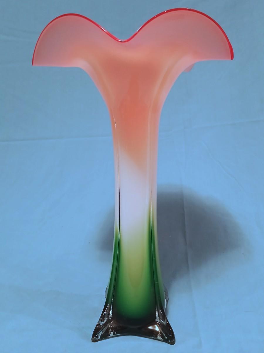 Stunning Handblown Jack in the Pulpit Glass Vase - Cased Glass Clear Over Green, White and Pink