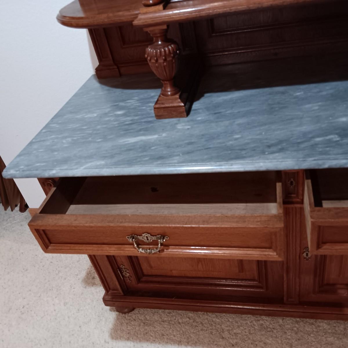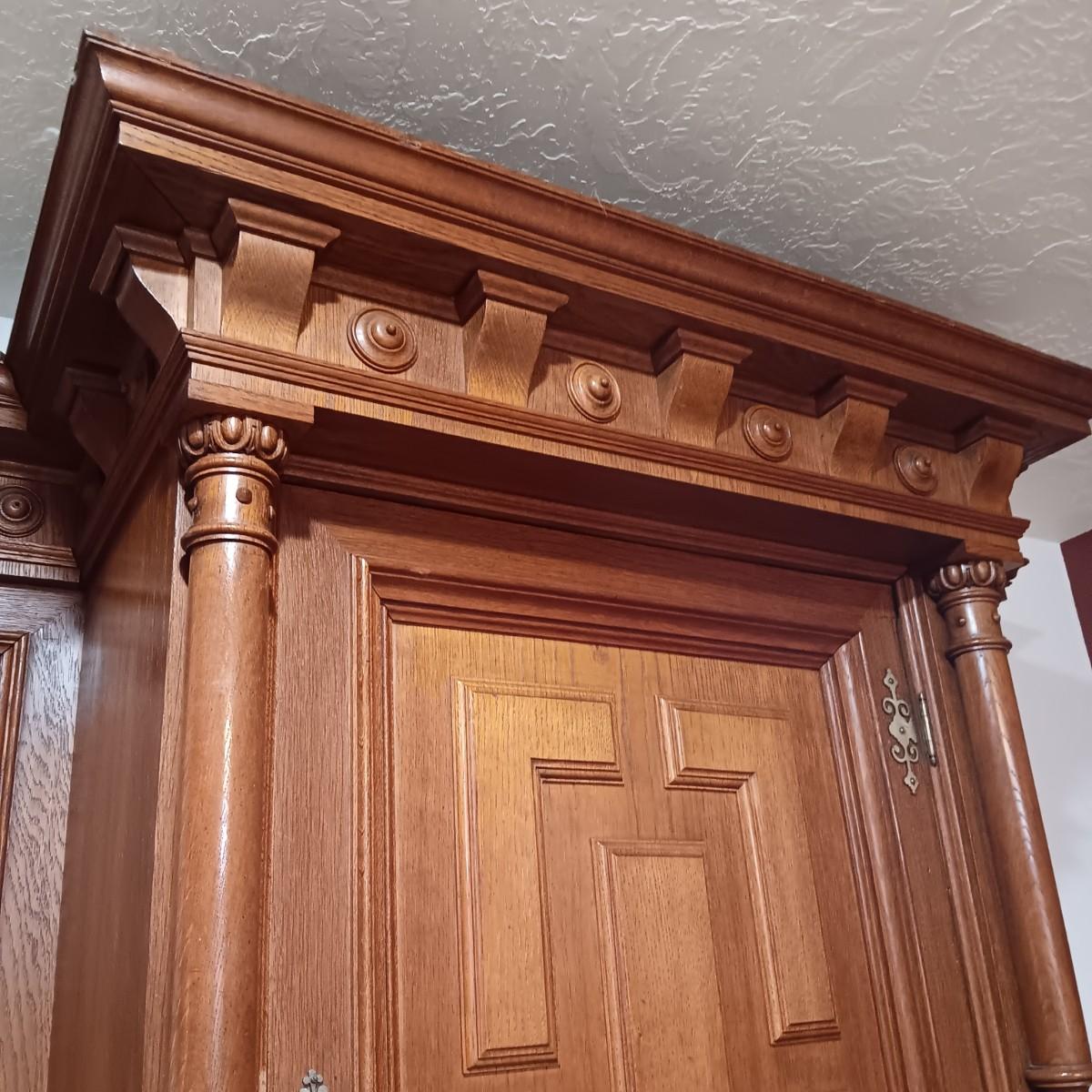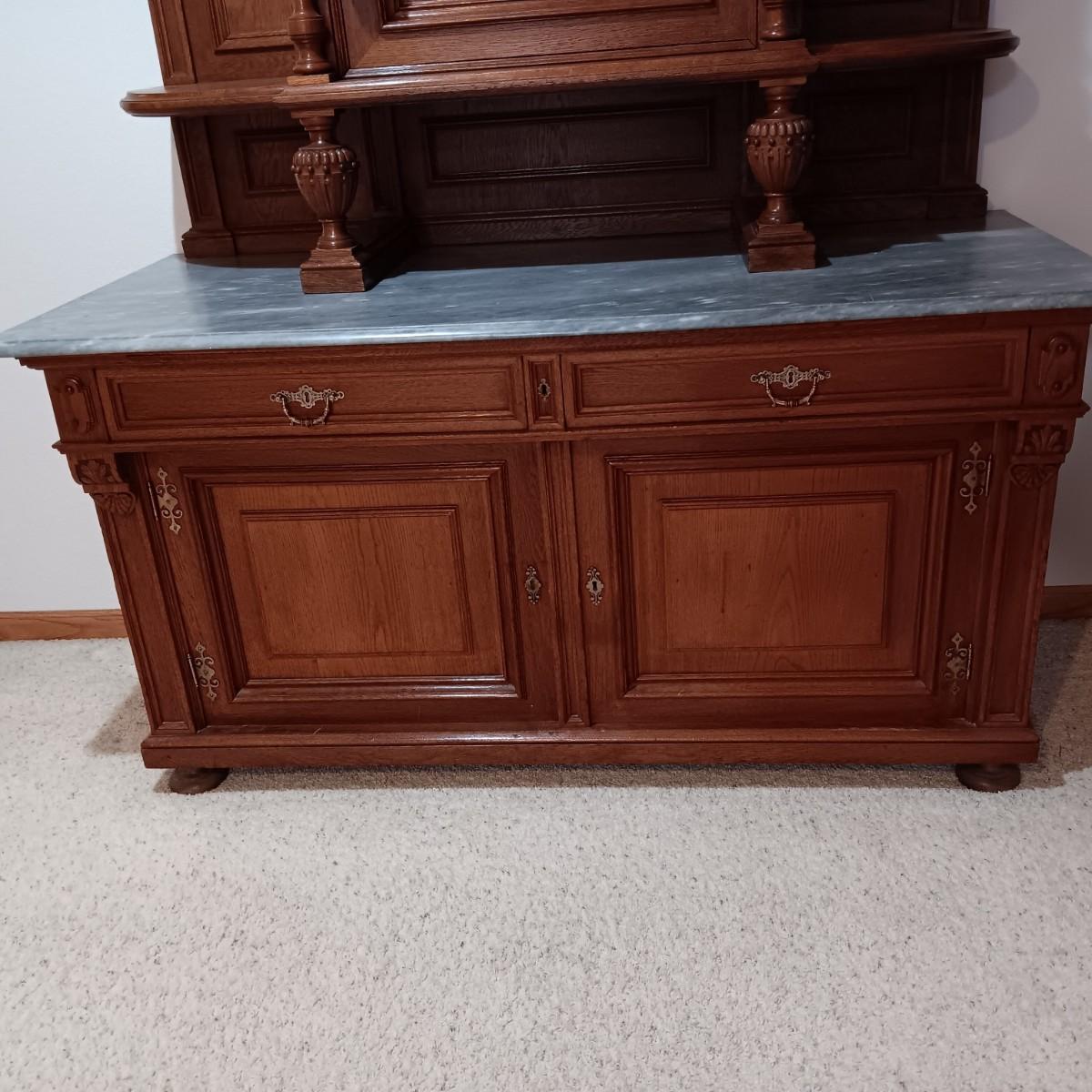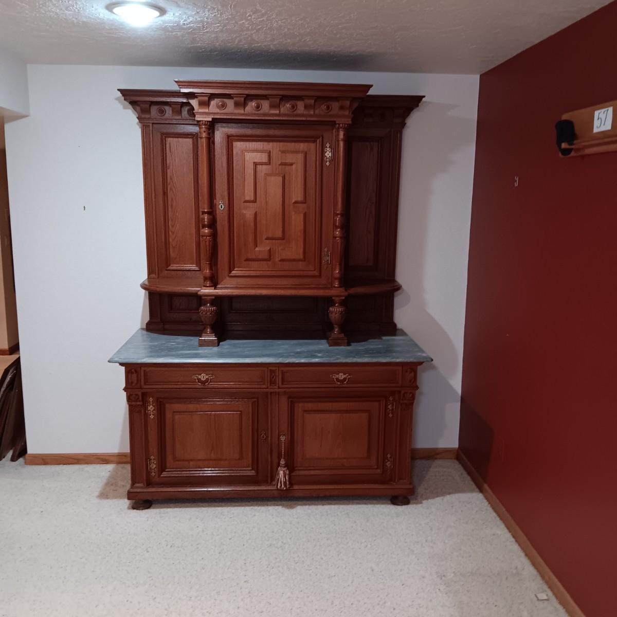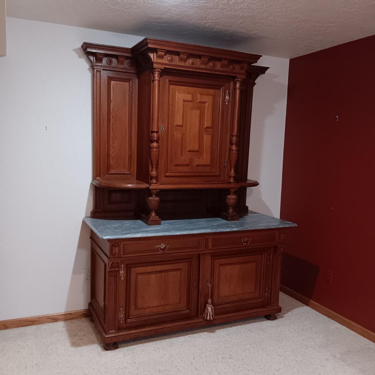 AFTER 25 YRS IN THIS BUSINESS, I HAVE TO SAY THIS IS THE MOST BEAUTIFUL PIECE OF FURNITURE I HAVE EVER SEEN! LOOK AT THE PIC OF THE DOVETAILED DRAWERS TO GIVE YOU AN IDEA OF THE QUALITY OF THIS PIECE. IT IS IN EXCELLENT CONDITION. THE UPPER CABINET, 2 DRAWERS AND BOTTOM 2 CABINETS LOCK WITH A SKELETON KEY. IT DOES COME APART IN AT LEAST 3 PIECES BUT I WOULD RECOMMEND THAT YOU HIRE A MOVING COMPANY TO TRANSPORT IT AND I HAVE THE NUMBER FOR A GOOD, REASONABLE MOVER IF NEEDED
