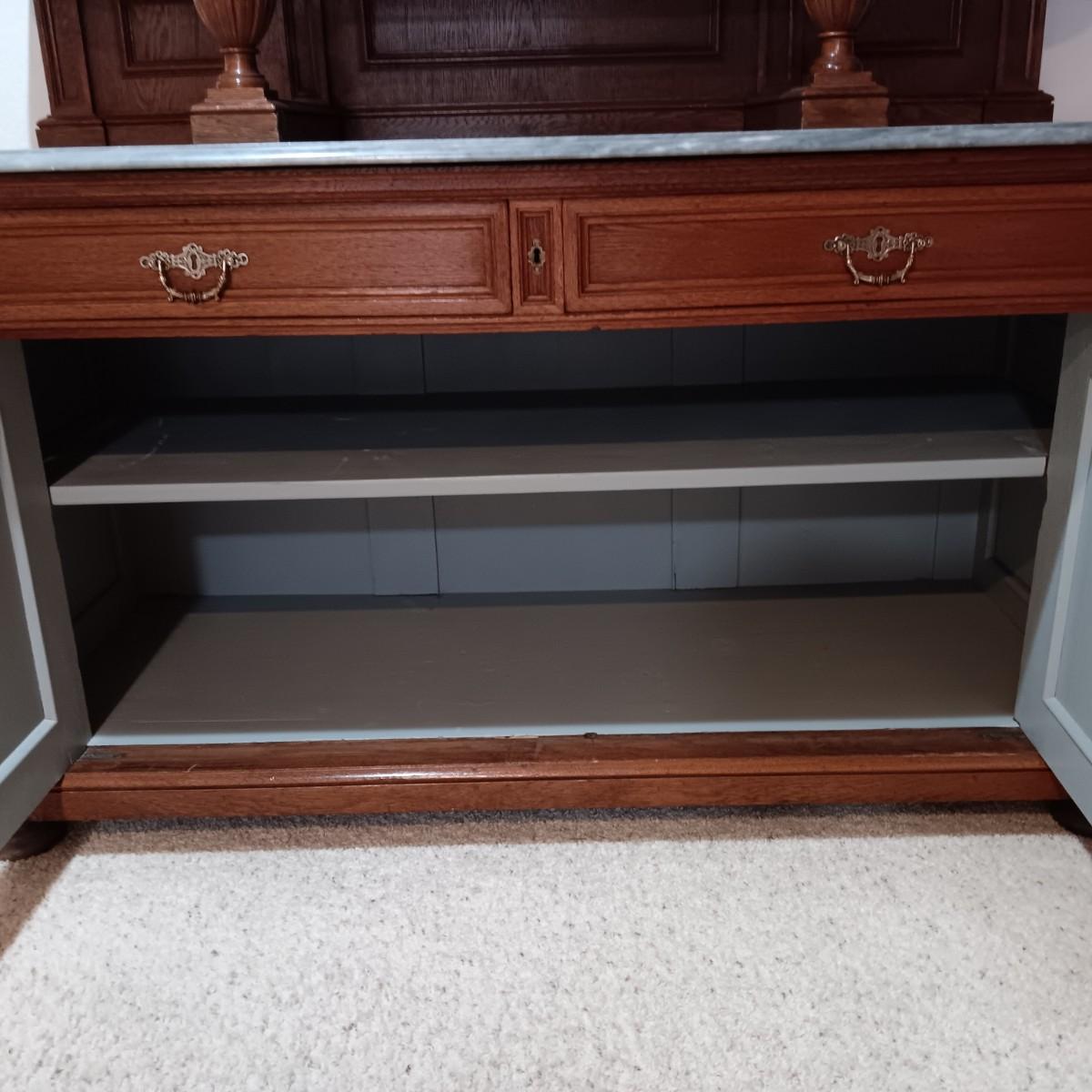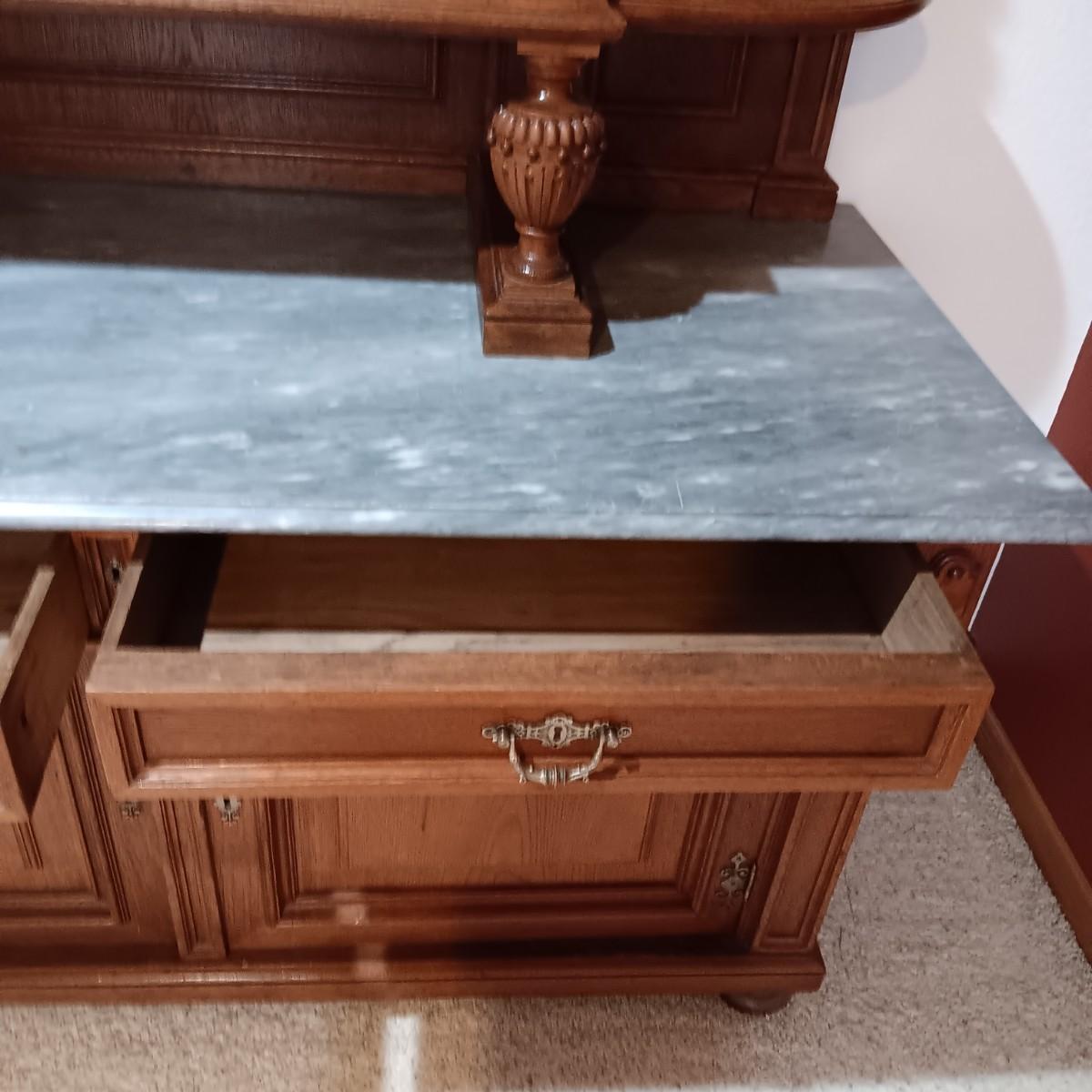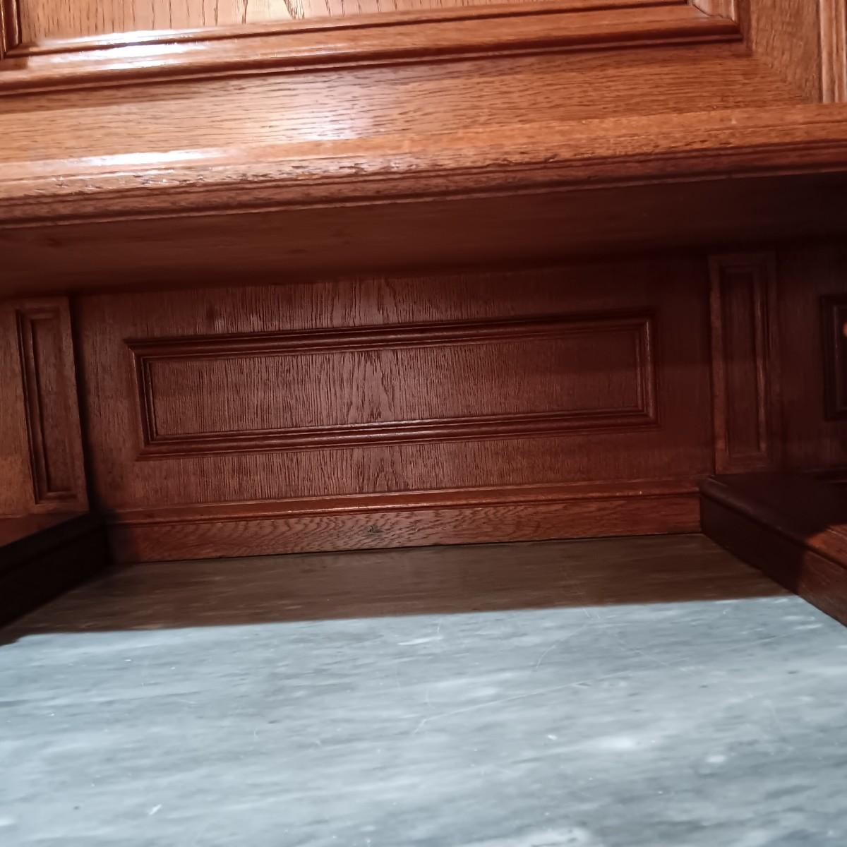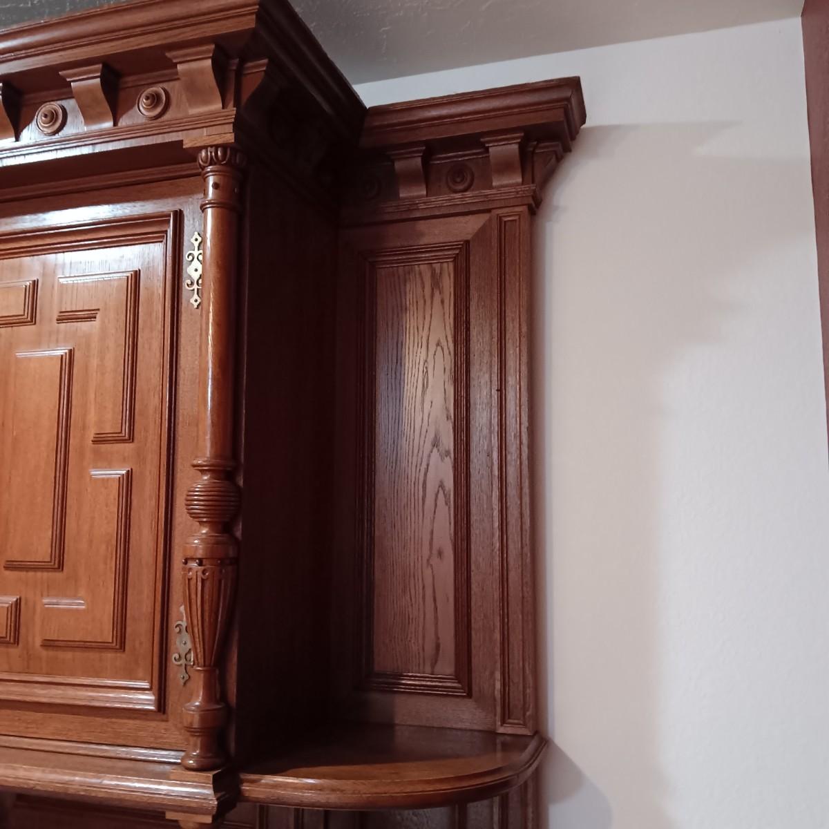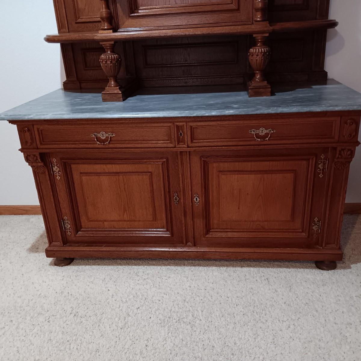 AFTER 25 YRS IN THIS BUSINESS, I HAVE TO SAY THIS IS THE MOST BEAUTIFUL PIECE OF FURNITURE I HAVE EVER SEEN! LOOK AT THE PIC OF THE DOVETAILED DRAWERS TO GIVE YOU AN IDEA OF THE QUALITY OF THIS PIECE. IT IS IN EXCELLENT CONDITION. THE UPPER CABINET, 2 DRAWERS AND BOTTOM 2 CABINETS LOCK WITH A SKELETON KEY. IT DOES COME APART IN AT LEAST 3 PIECES BUT I WOULD RECOMMEND THAT YOU HIRE A MOVING COMPANY TO TRANSPORT IT AND I HAVE THE NUMBER FOR A GOOD, REASONABLE MOVER IF NEEDED