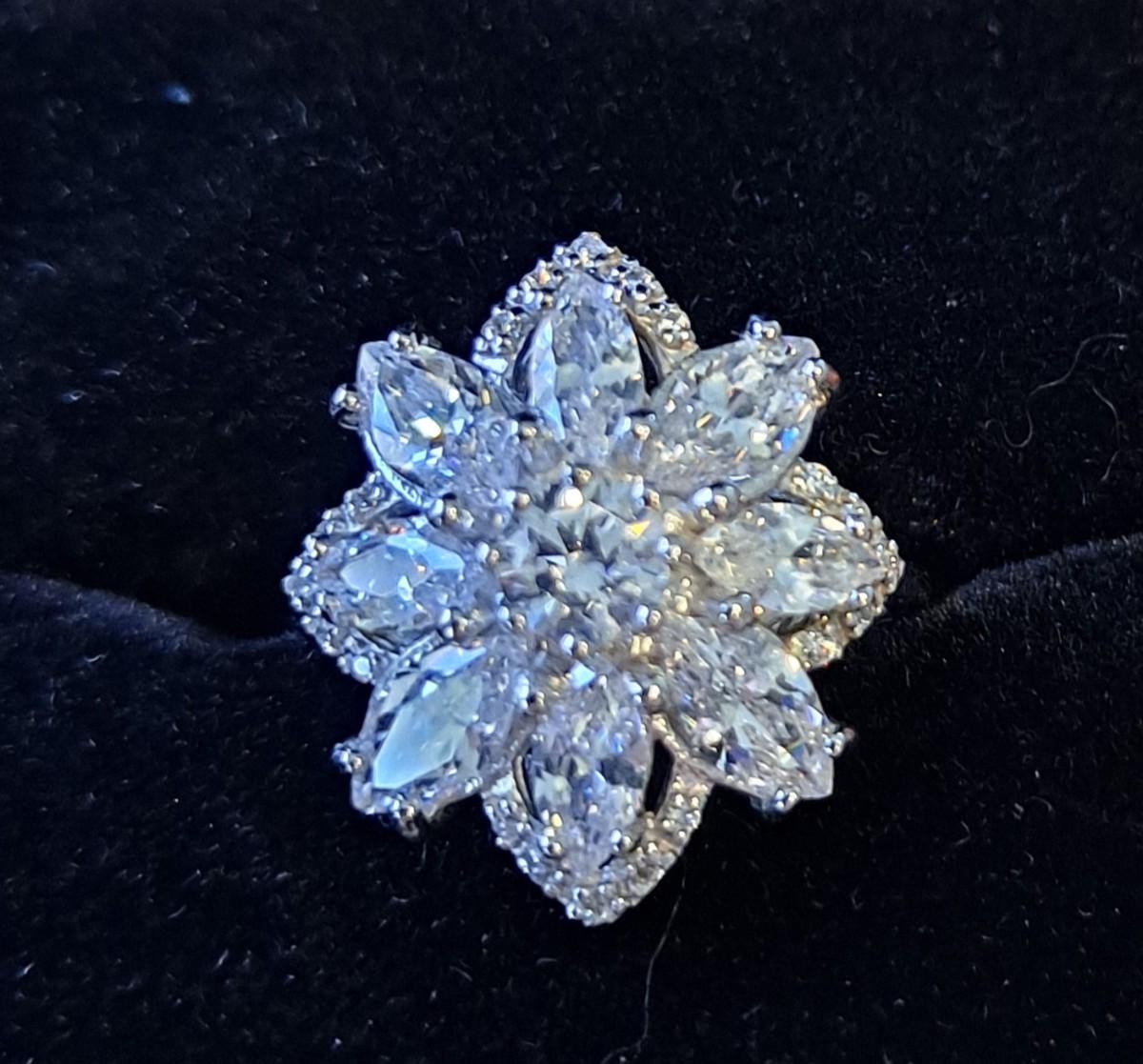 Stunning Lab Grown White Sapphire Diamond Cut 925 Sterling Silver Hand Crafted Floral Ring Size 6.5