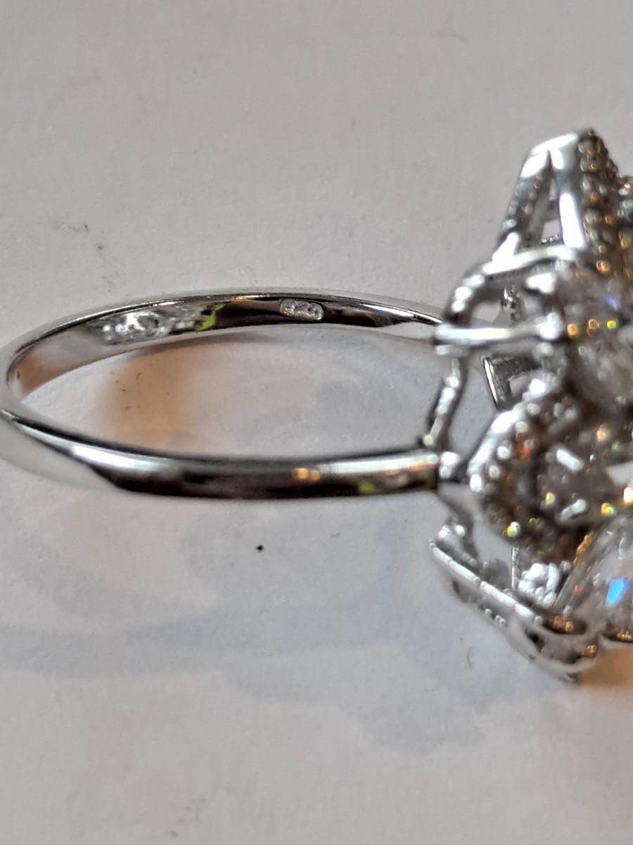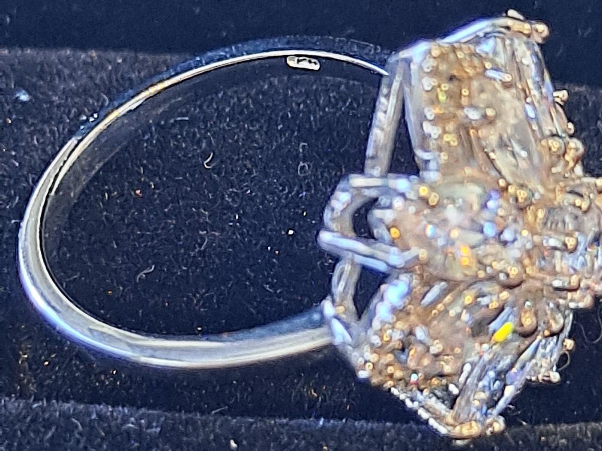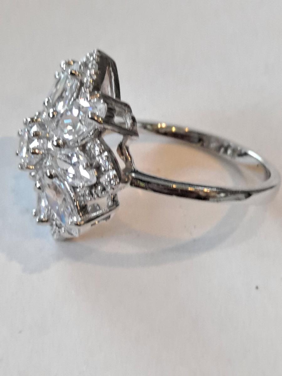 Stunning Lab Grown White Sapphire Diamond Cut 925 Sterling Silver Hand Crafted Floral Ring Size 6.5