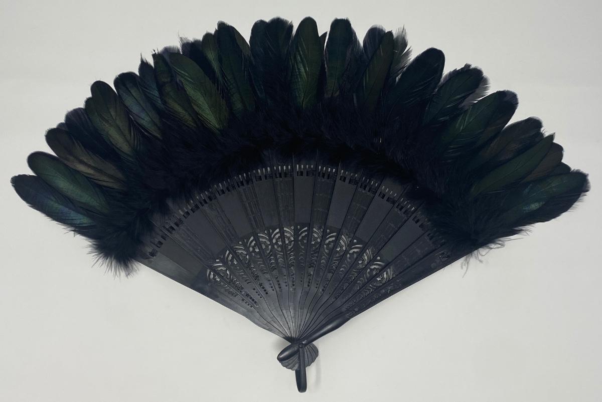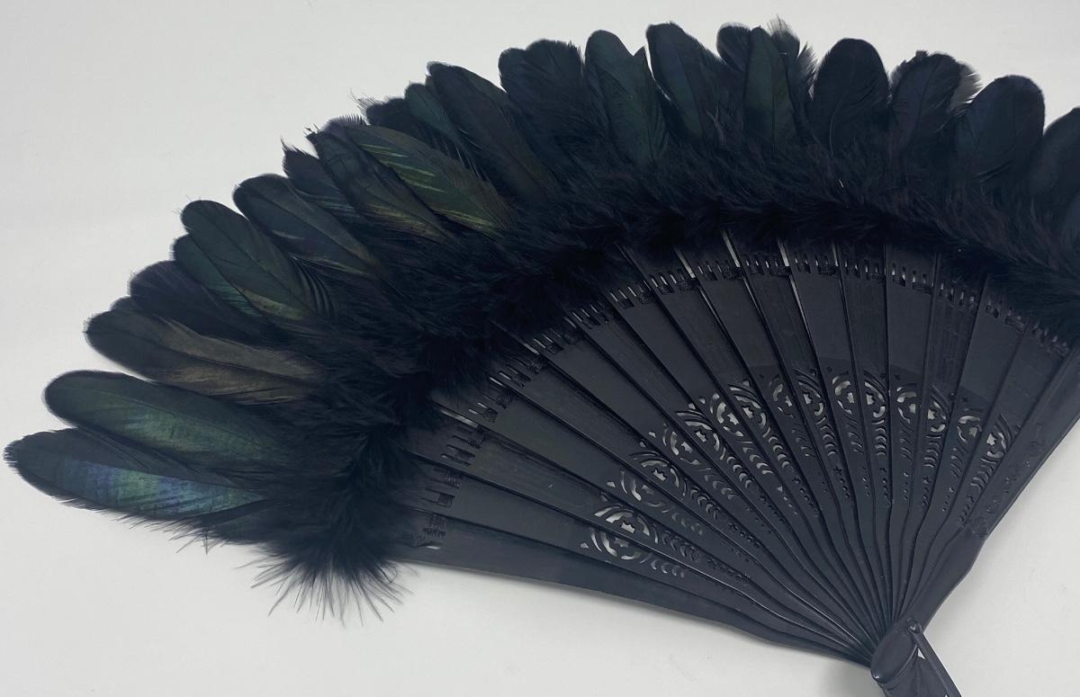Stunning Vintage Black Feather Handheld Fan