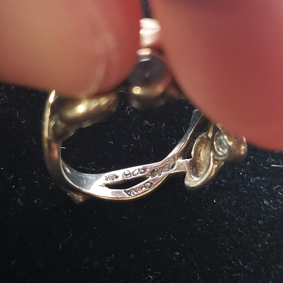 Stunning Leaf and Gem 18K/Sterling Ring (ST-KD)