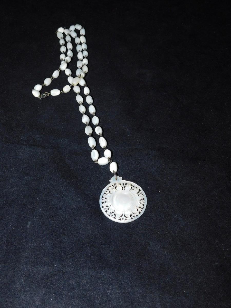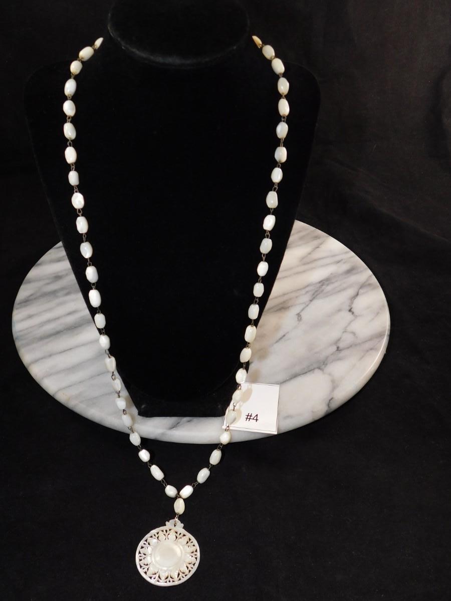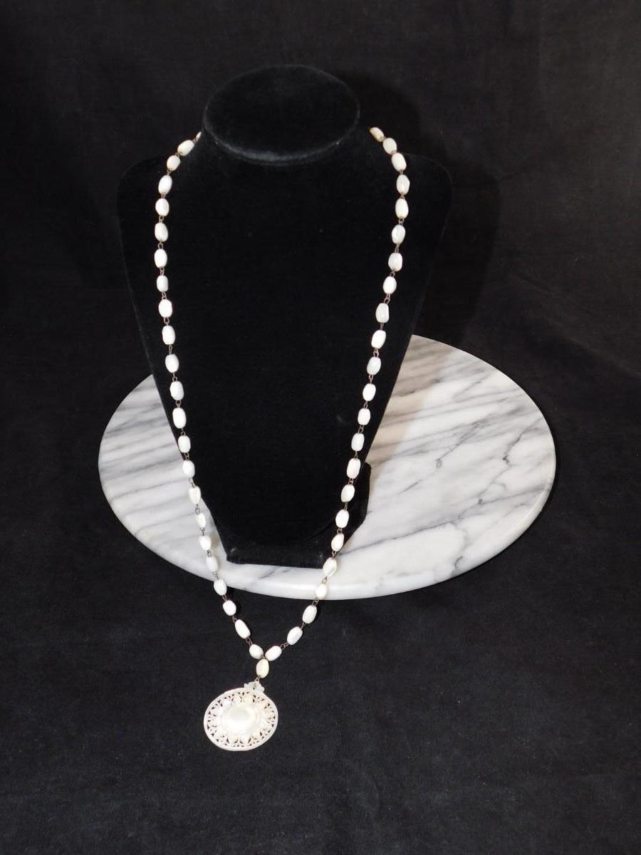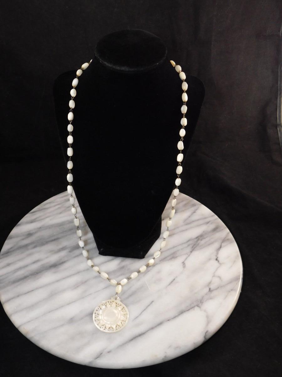 Stunning Mother of Pearl Necklace w/ Intricate Pendant 28”