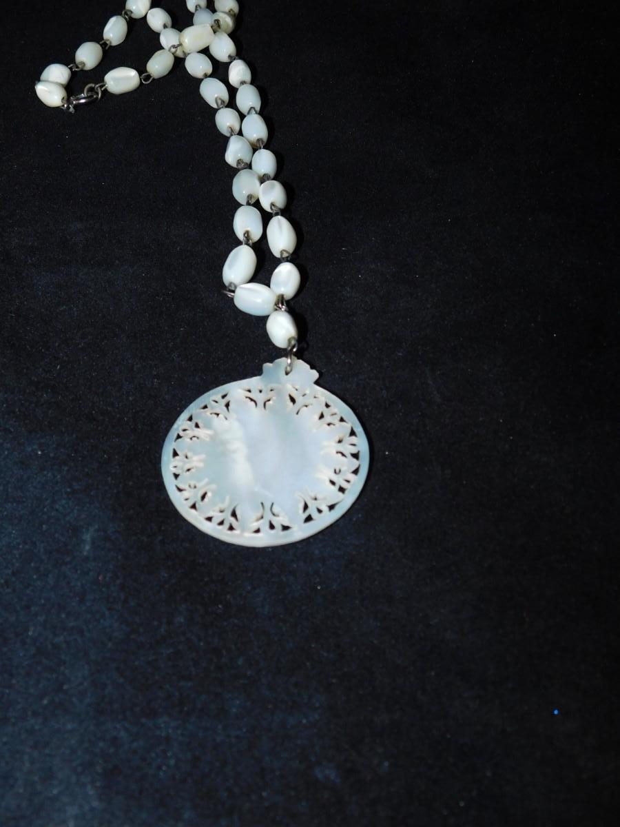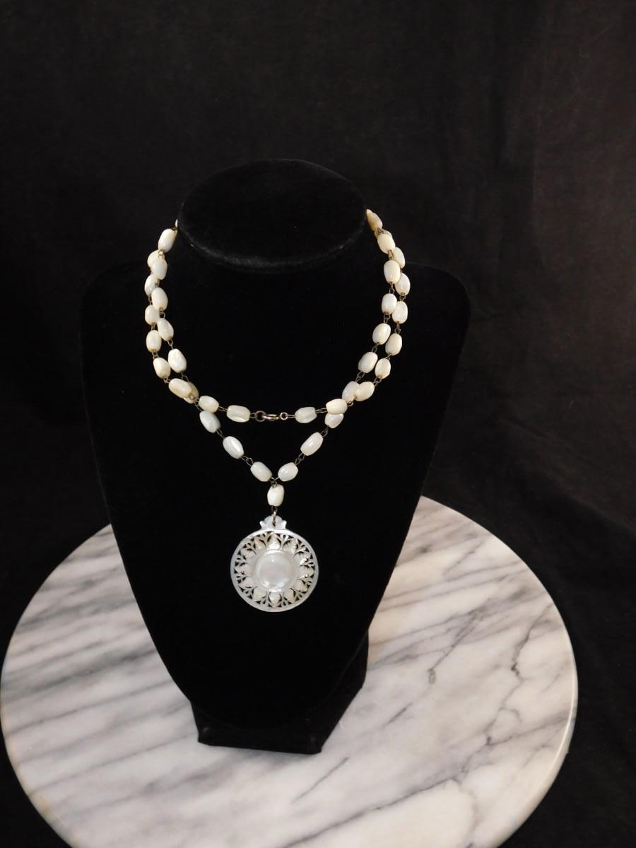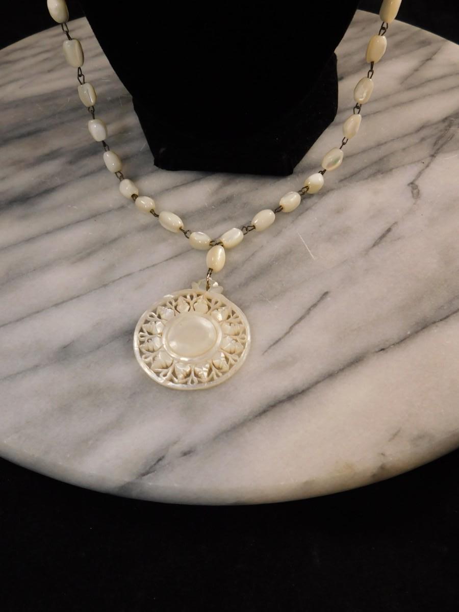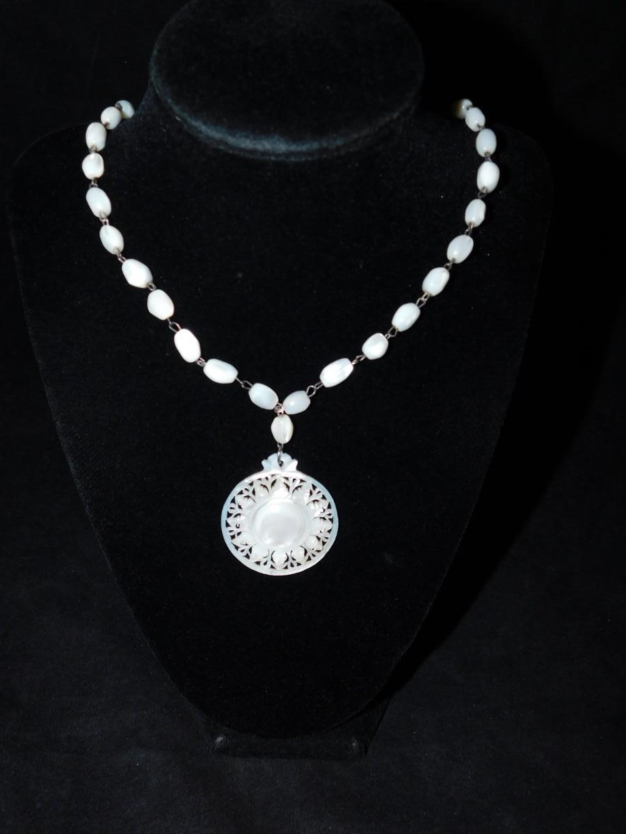 Stunning Mother of Pearl Necklace w/ Intricate Pendant 28”