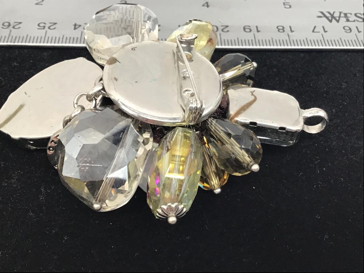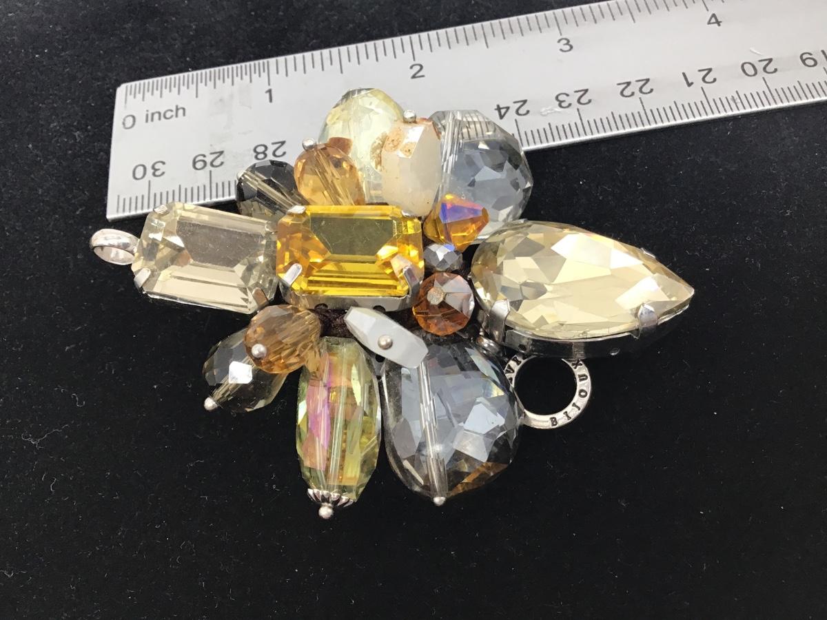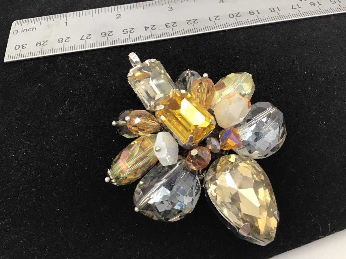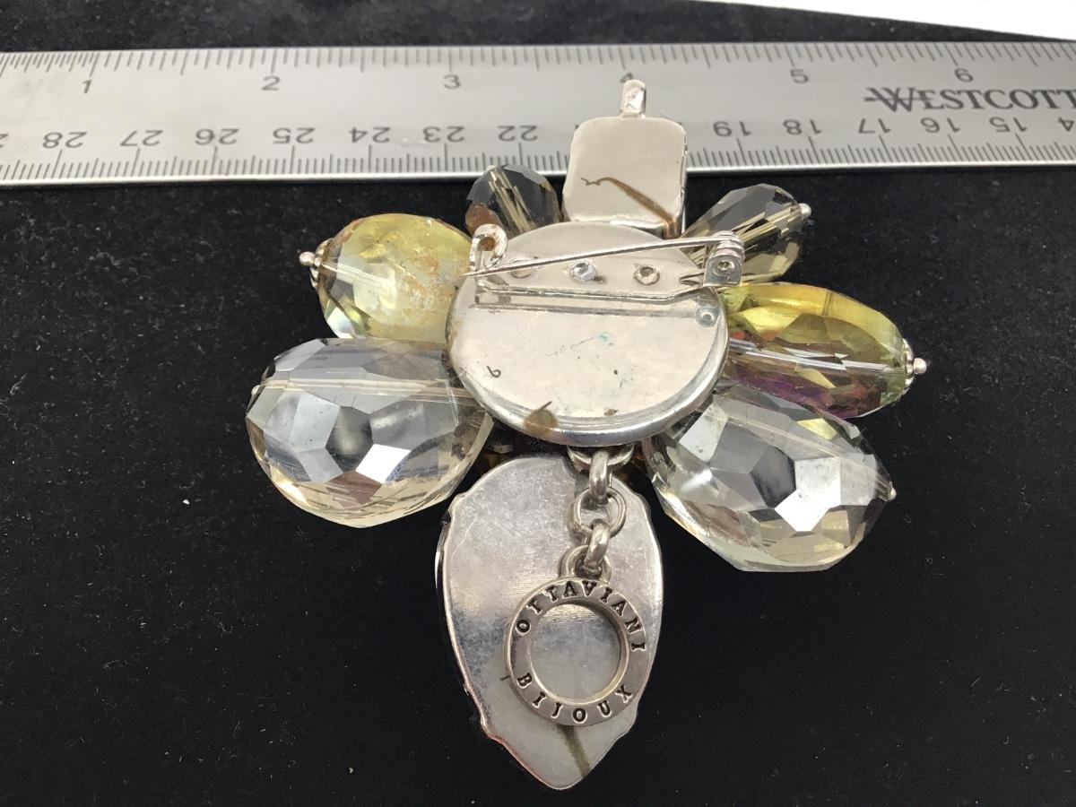 Ottaviani Bijoux Large Italy Stunning /Pendant Brooch Yellow Amber Rhinestone Cluster Gold