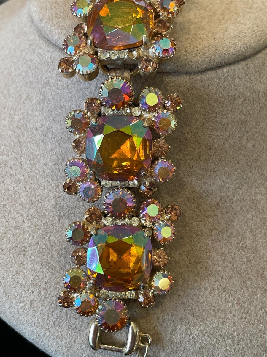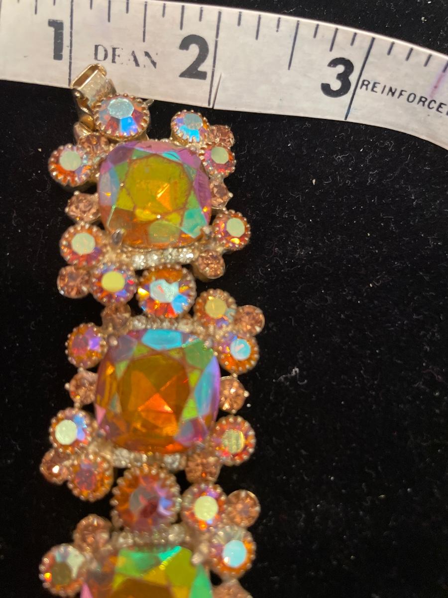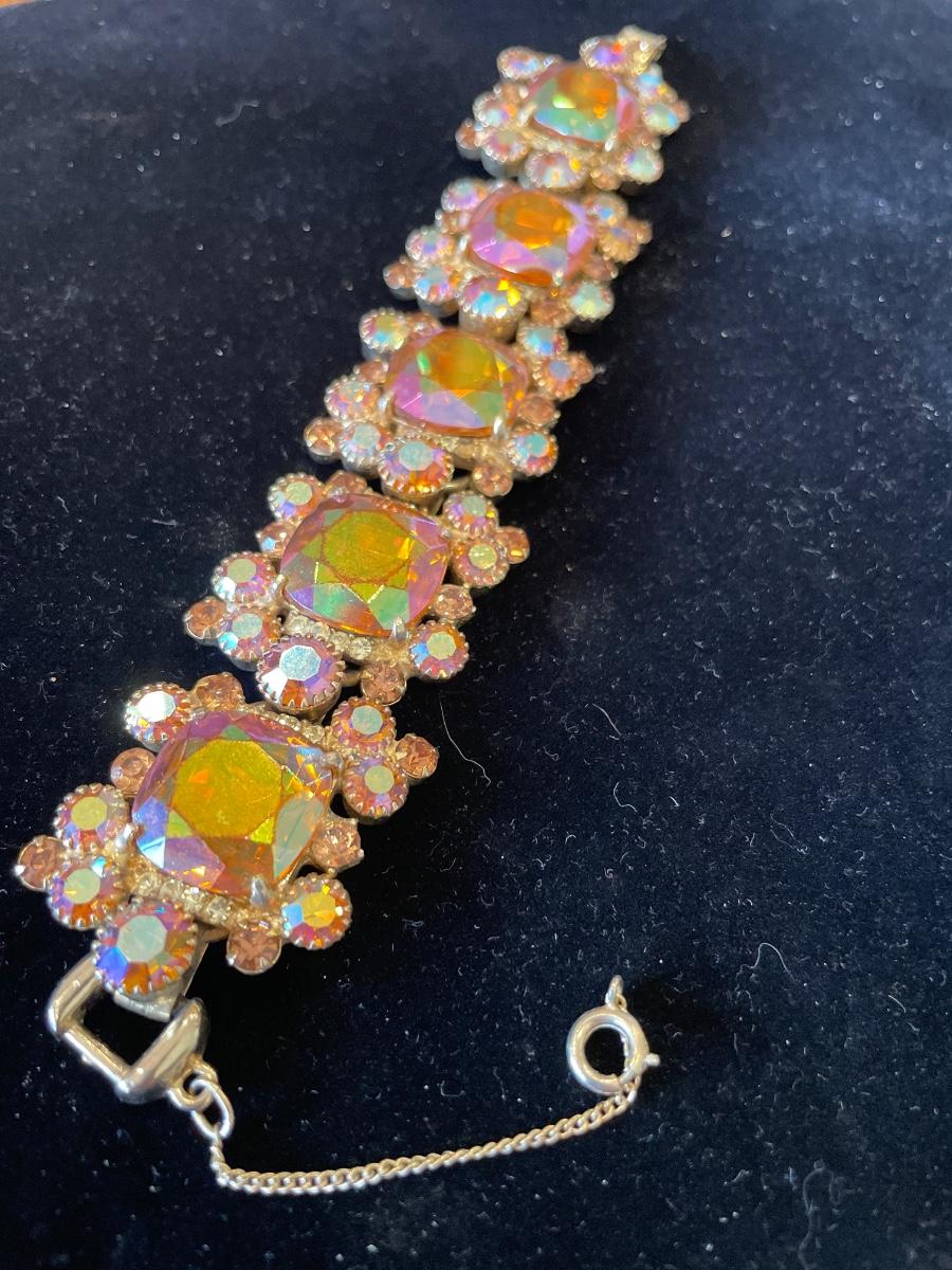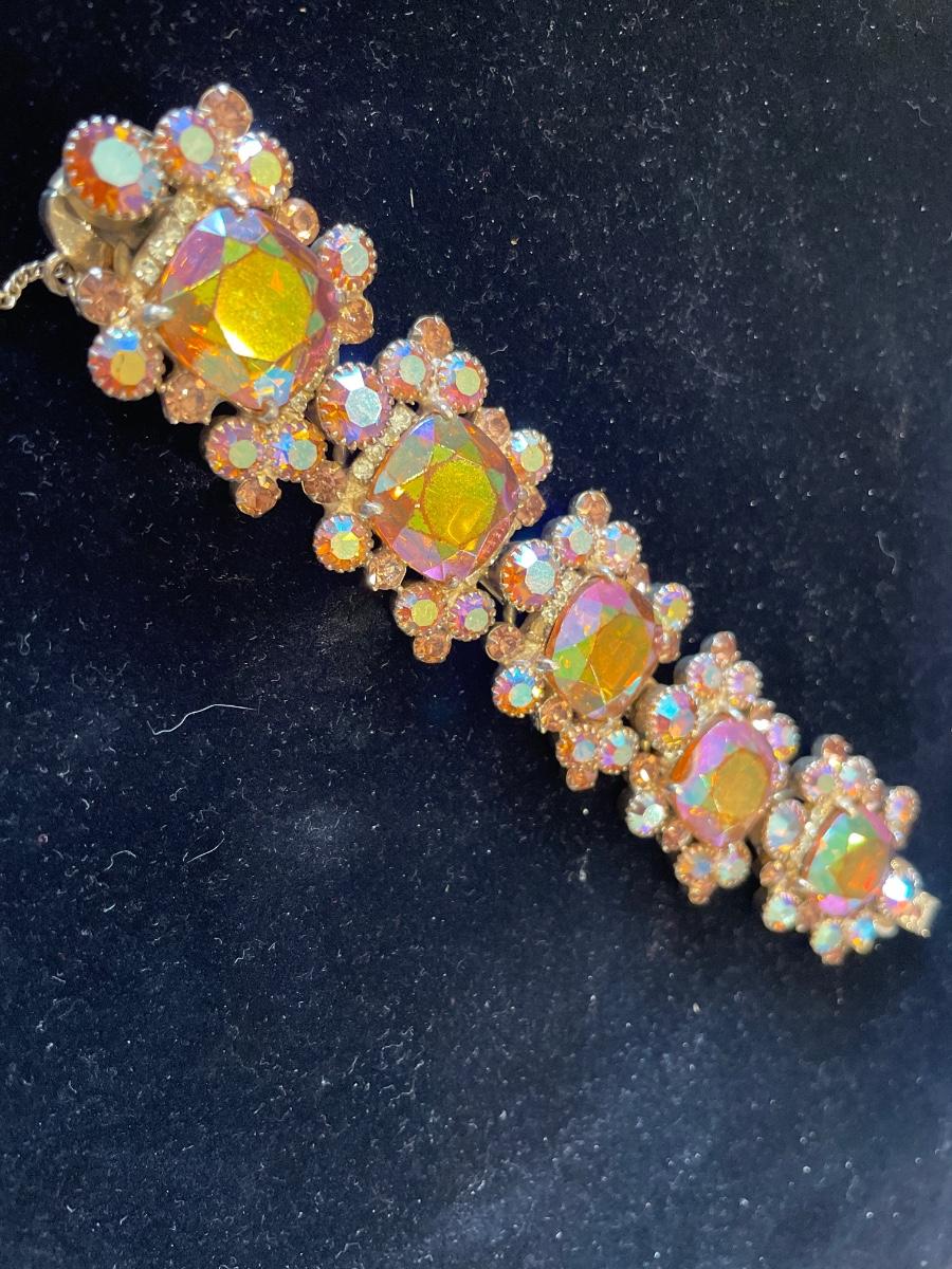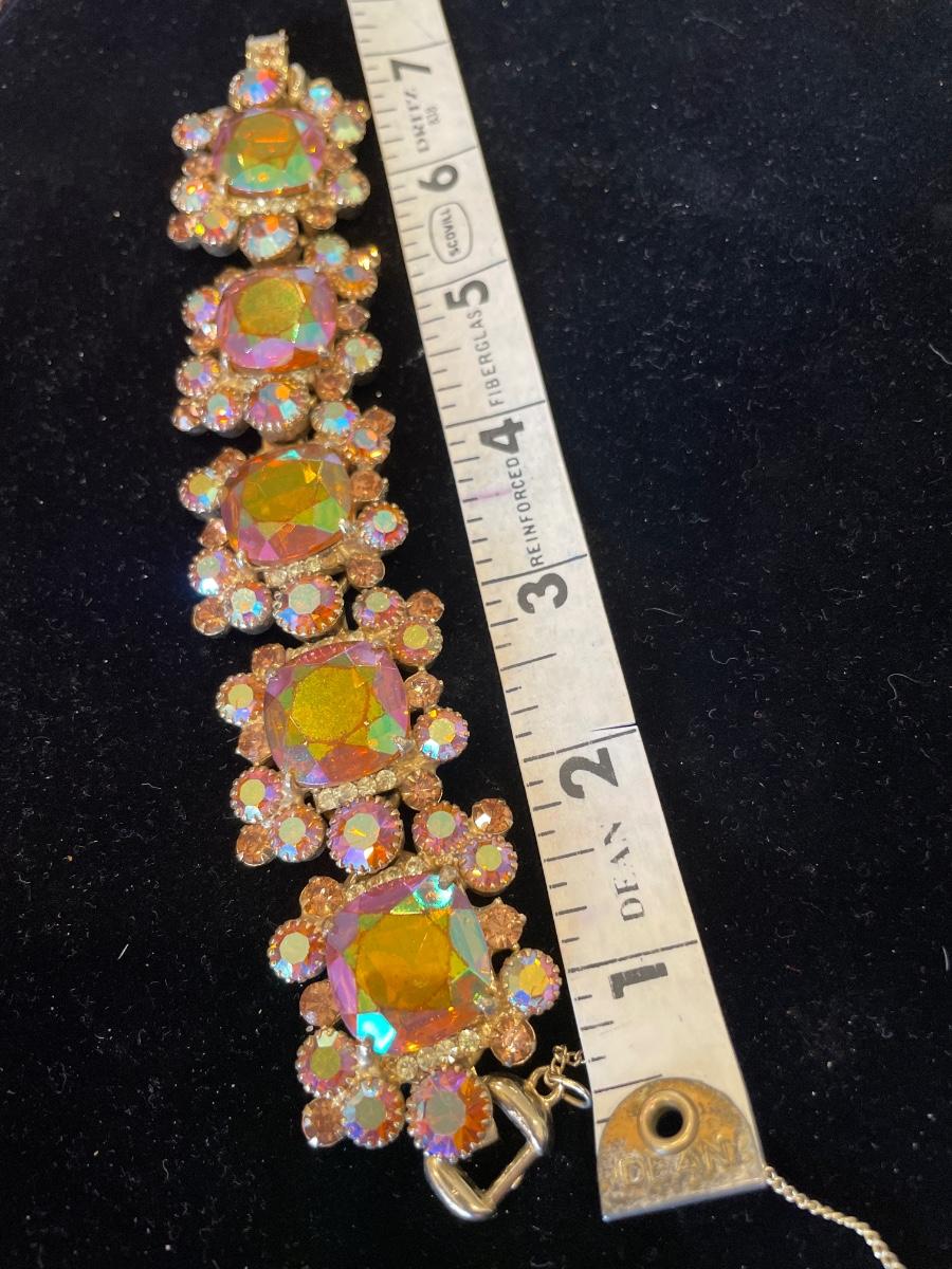 Bracelet is not signed but is definitely a stunning bracelet with large middle rhinestones accent with smaller rhinestone
