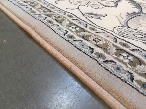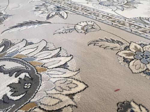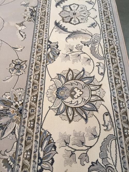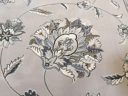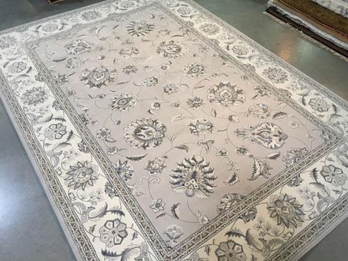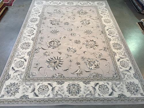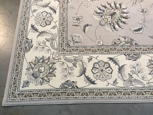 6 Feet 7 Inches X 9 Feet 6 Inches top of line Belgium made Brand Name Rug, in Oushak Pattern Premium Quality 1.0 m ppsm dense Pile in SoFoot Grey, Ivory, and Multi Accent Colors, made of Durable and easy to care, Polypropylene Pile Power Loomed in Belgium.