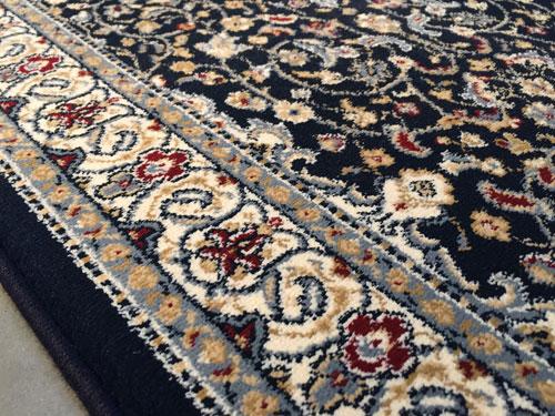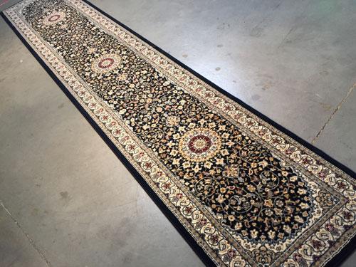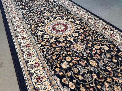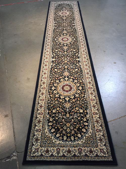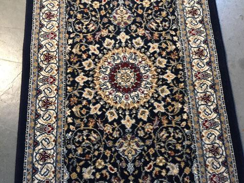 2 Feet 3 Inches X 11 Feet top of line Belgium made, Brand Name Rug, in Persian Isfahan intricate and detailed, Pattern Premium Quality 1.0 m ppsm dense Pile in Rich Navy, and Multi Accent Colors. Made of Durable and easy to care, Polypropylene Pile Power Loomed in Belgium.