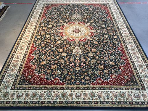 7 Feet 9 Inches X 11 Feet Brand Name Rug, in Persian Kashan intricate and detailed Pattern Premium Quality 1.0 m ppsm dense Pile in dark Green, jewel tones, and Multi Accent Colors, made of Durable and easy to care, Polypropylene Pile Power Loomed in Turkey.