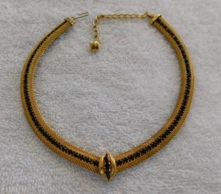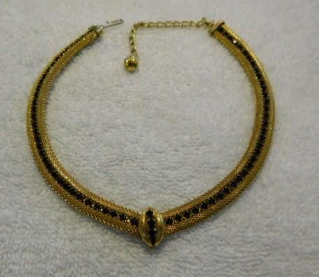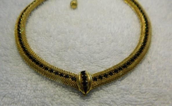 Stunning Rich Gold Mesh Necklace Laced with Garnet Studs 12" (Open)