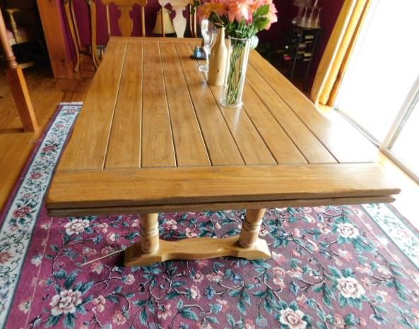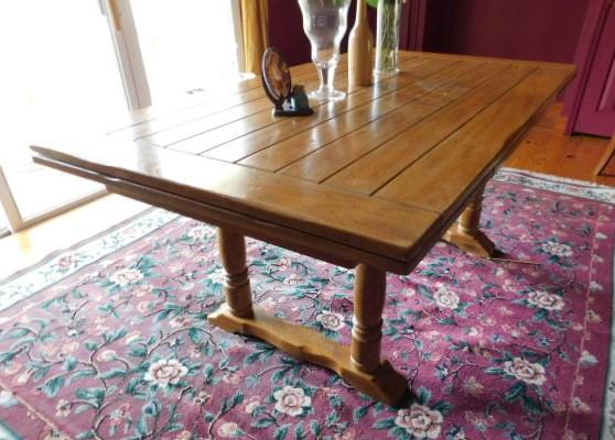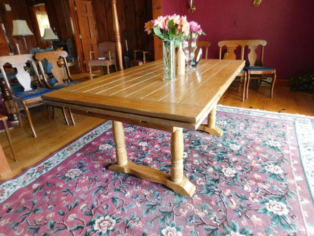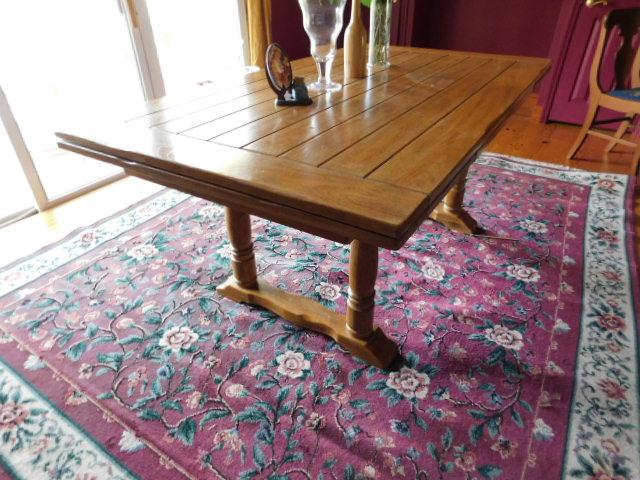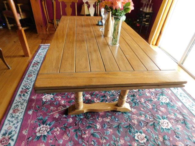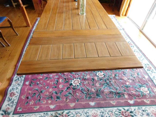 Stunning Slide Leaf Wood Plank Dining Table 68" (+Two 18" Leaves) x 38"x29" in good condition. this table appraised for over $1500.
