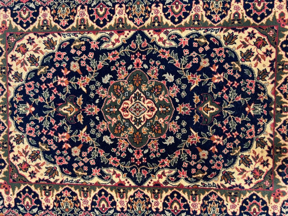 DESCRIPTION: This exquisite small rug has been tightly woven with intricate patterns of jewel-like foliate patterns on a black field. The wide framing borders repeat a dynamic border design that sets this rug apart.