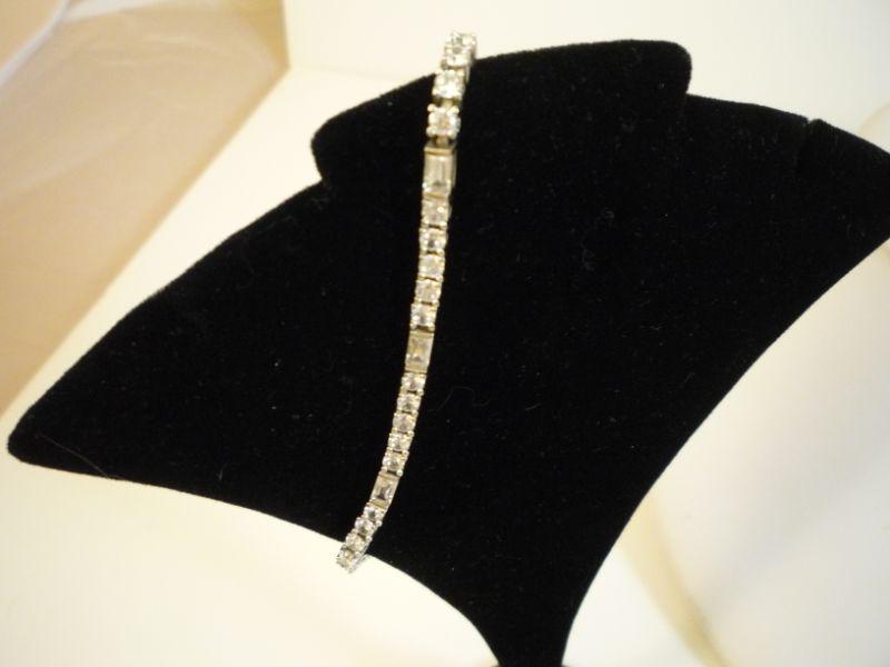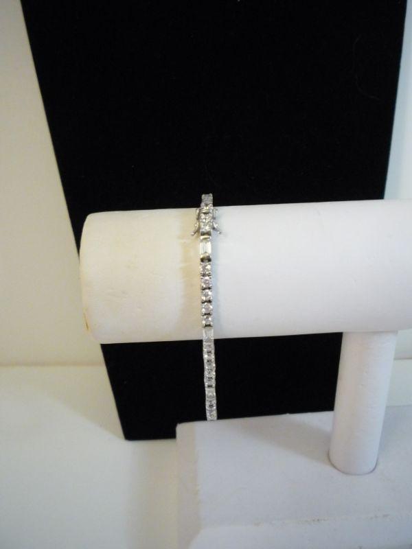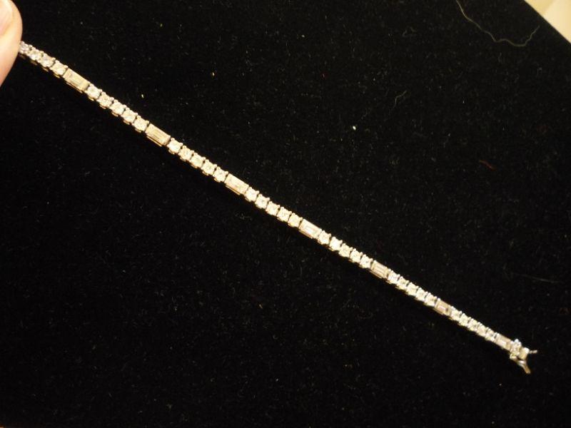 This tennis bracelet just sparkles - strong clasp with two security hooks -- extremely well made -- marked 925 and CZ -- measures approx. 8 inches - round and baguette stones