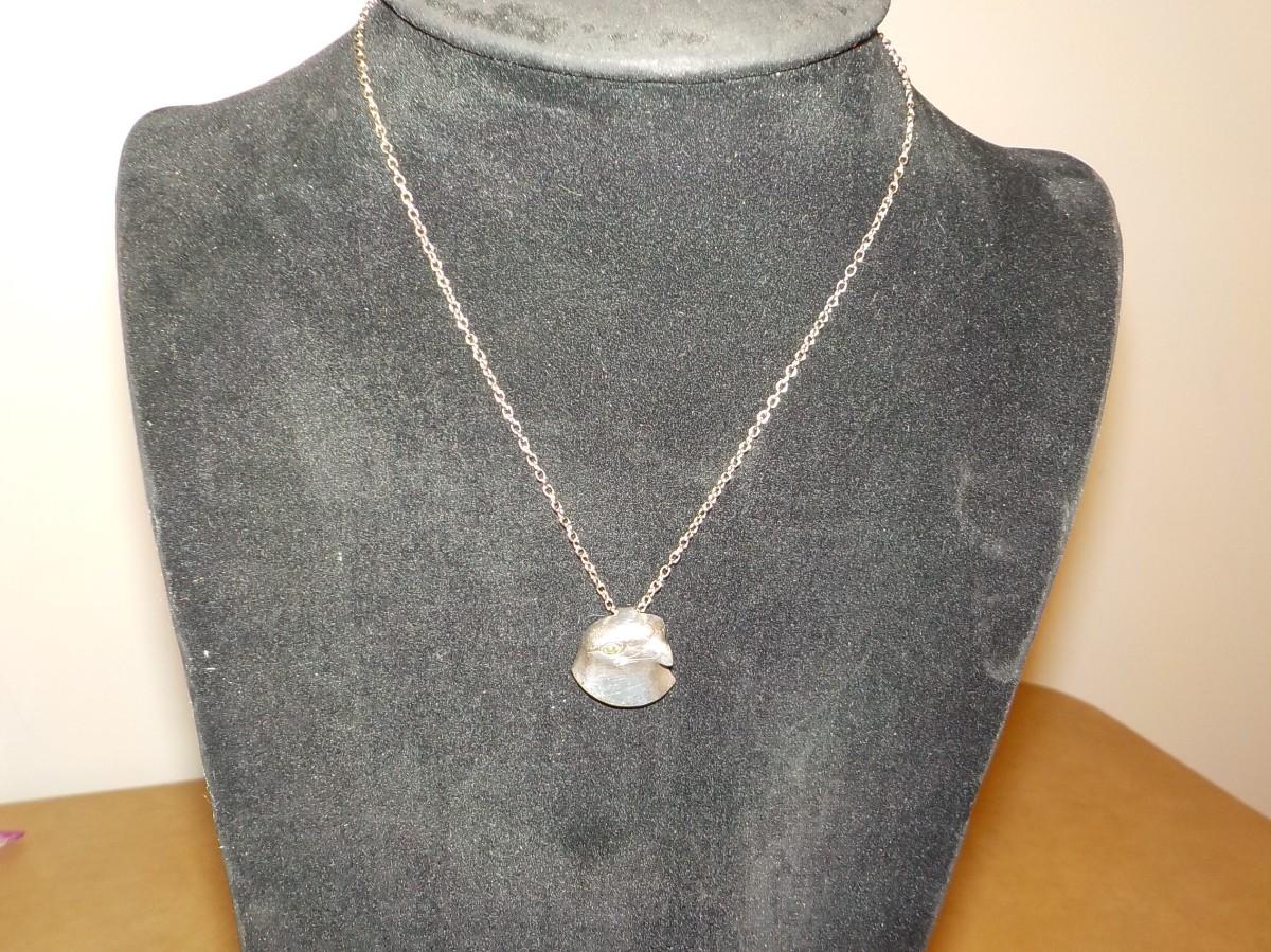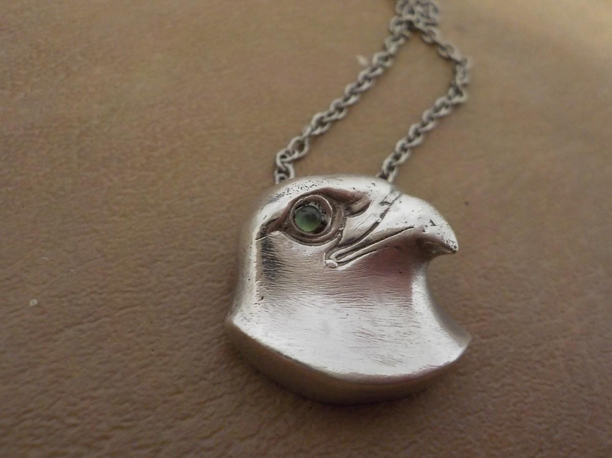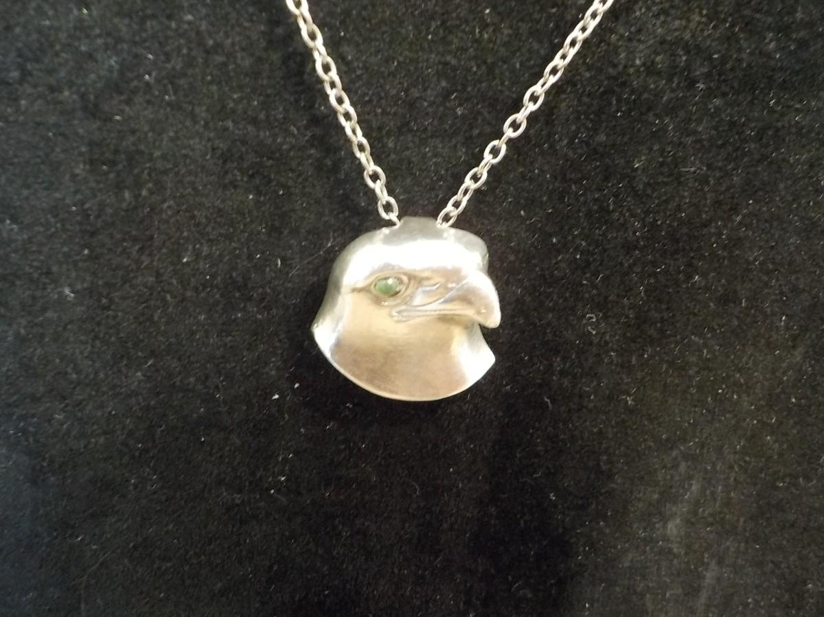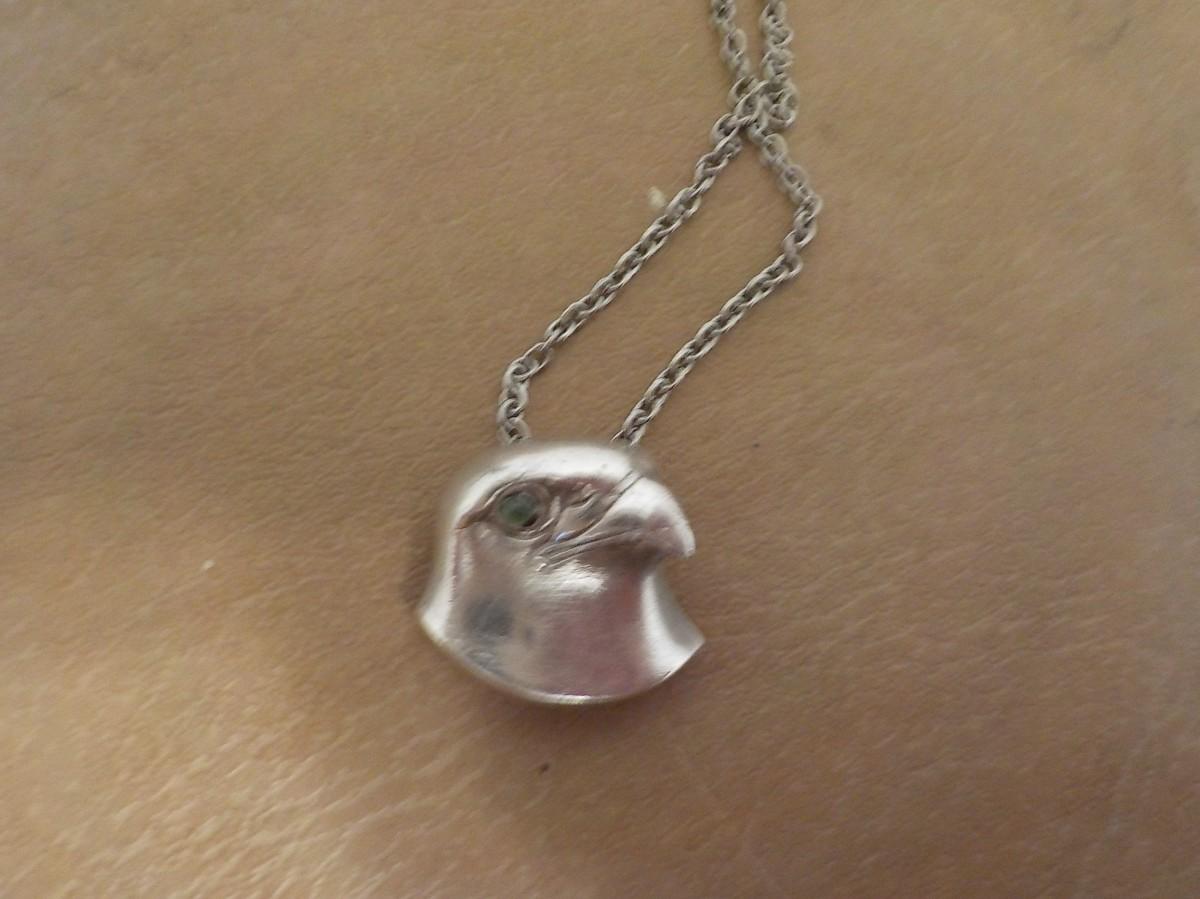 Stunning sterling silver Falcon with eye stone. Necklace.
