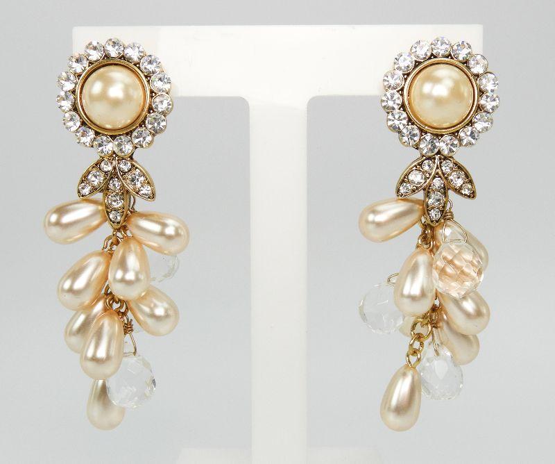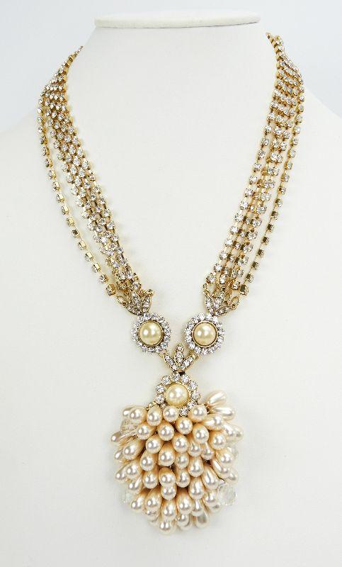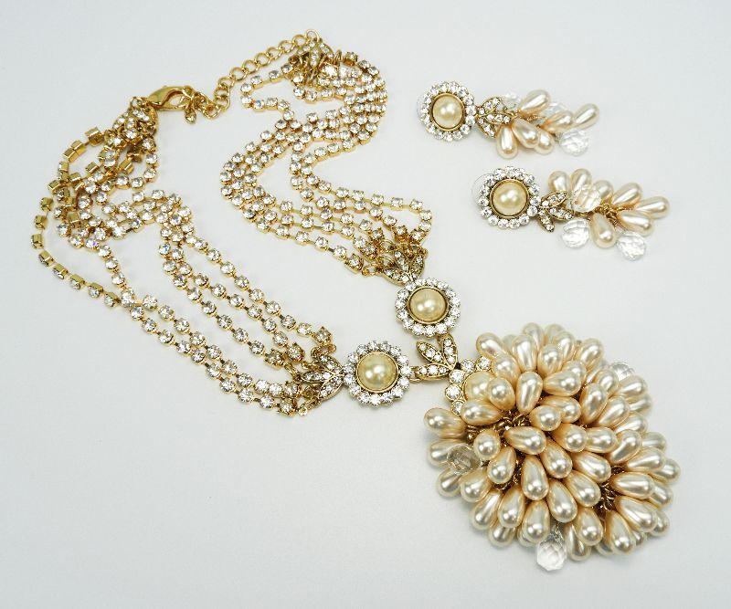 Stunning Universal Vault Collection Pearl Bead & Crystal Rhinestone Necklace & Earring Set