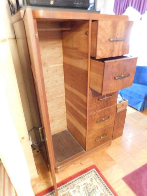 Stunning Vintage Art Deco Tall Boy Dresser Armoire Cabinet 38"x20"x60"