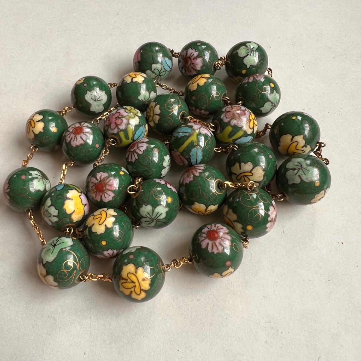 Stunning Vintage Cloisonné Bead Necklace