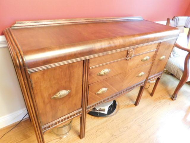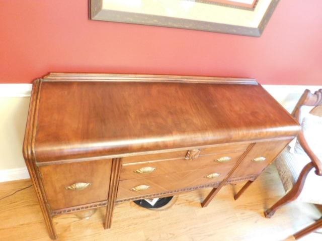 Stunning Vintage Deco Waterfall Solid Wood Sideboard Buffet 60"x18"x38" may have some scratches or wear to the finish