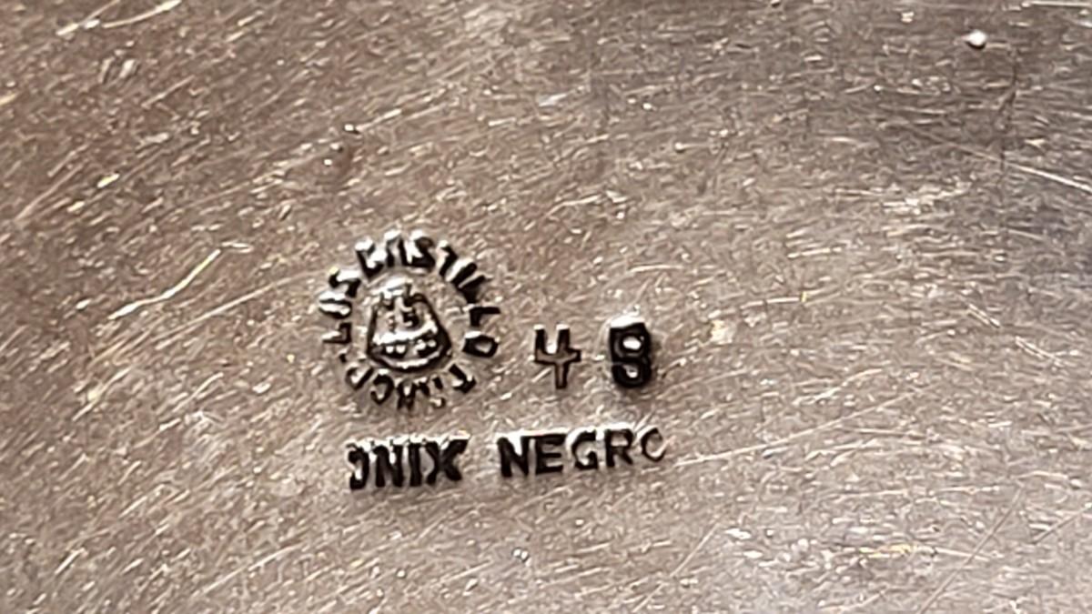 Onix Negro Collection was being made between 1950-1970. Los Castillo Onix Negro line of jewelry was inlaid with an Amalgam of black stone.