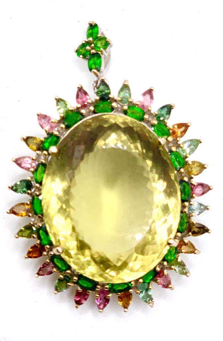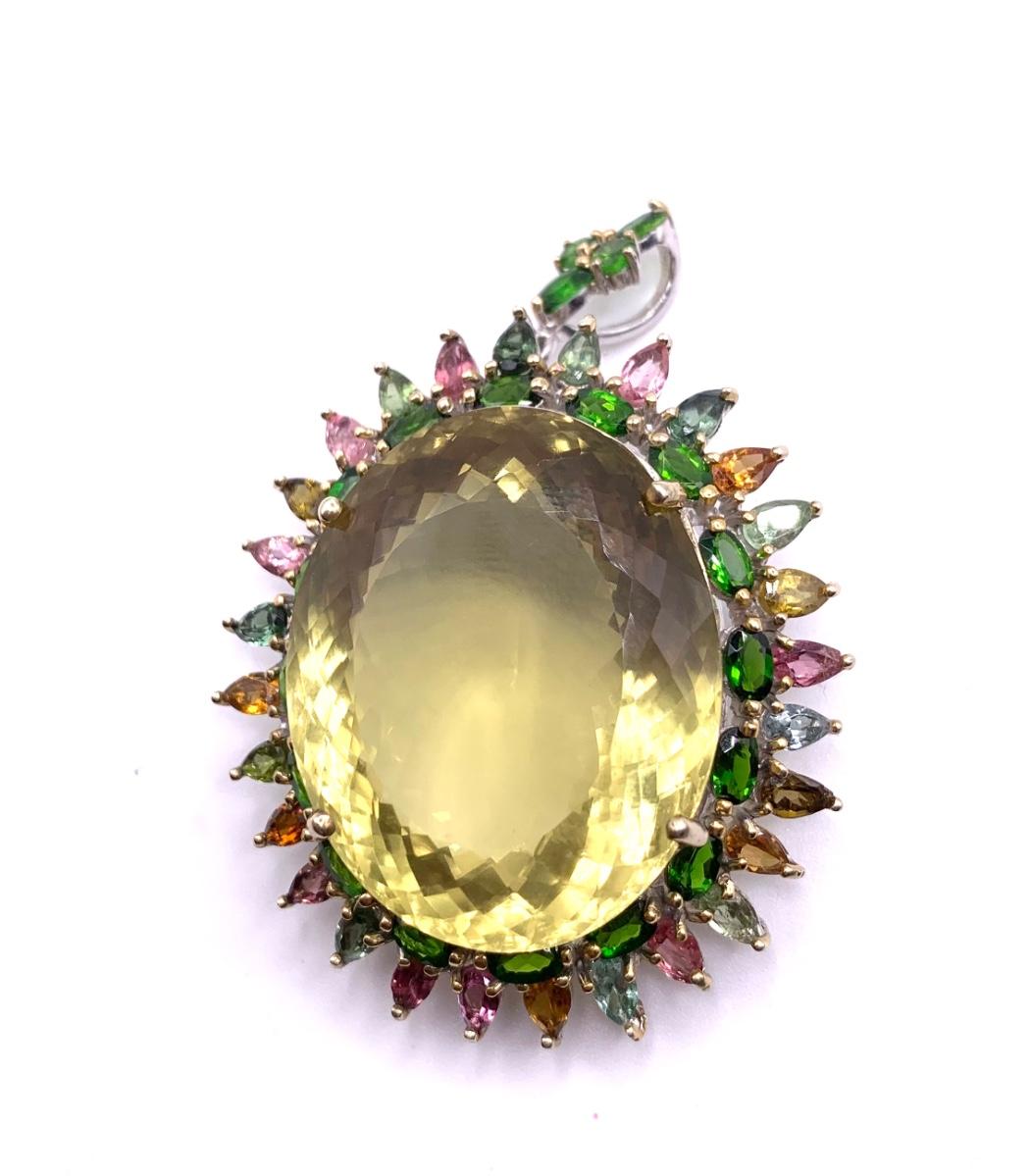Stunning Vintage Citrine w/ Rhinestones -  Converter Pendant &Brooch