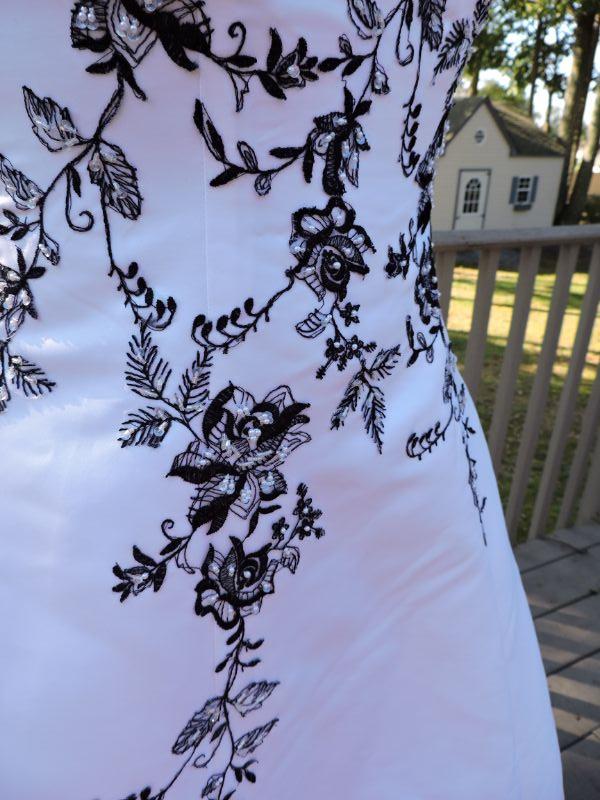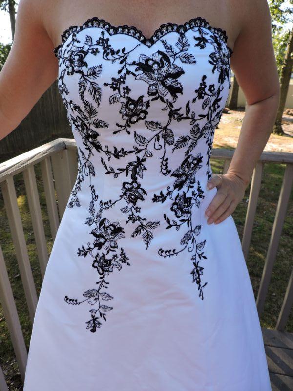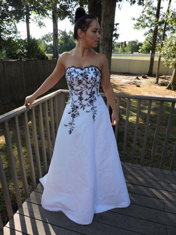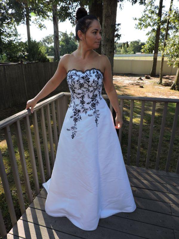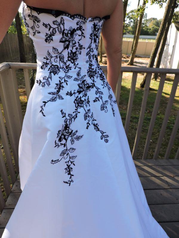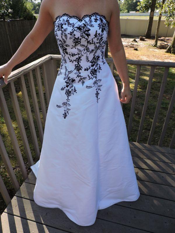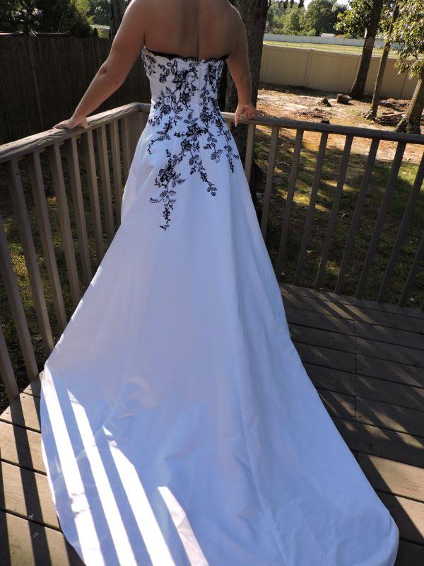 From David's Bridal. Never worn, but was altered once, about a size 4-6. Owner lost weight and couldn't wear it. Beautiful embroidery and beading on the top. Long train. **Please read Terms and Conditions before placing a bid. Pick up is Sunday, September 15, 2019 from 11am to 4pm and Tuesday, September 17 from 4pm-7pm in Sicklerville. All sales are final. All sales are as is, where is. Please review all photos. Any props included in photos are not included in listing. All measurements are approximate.