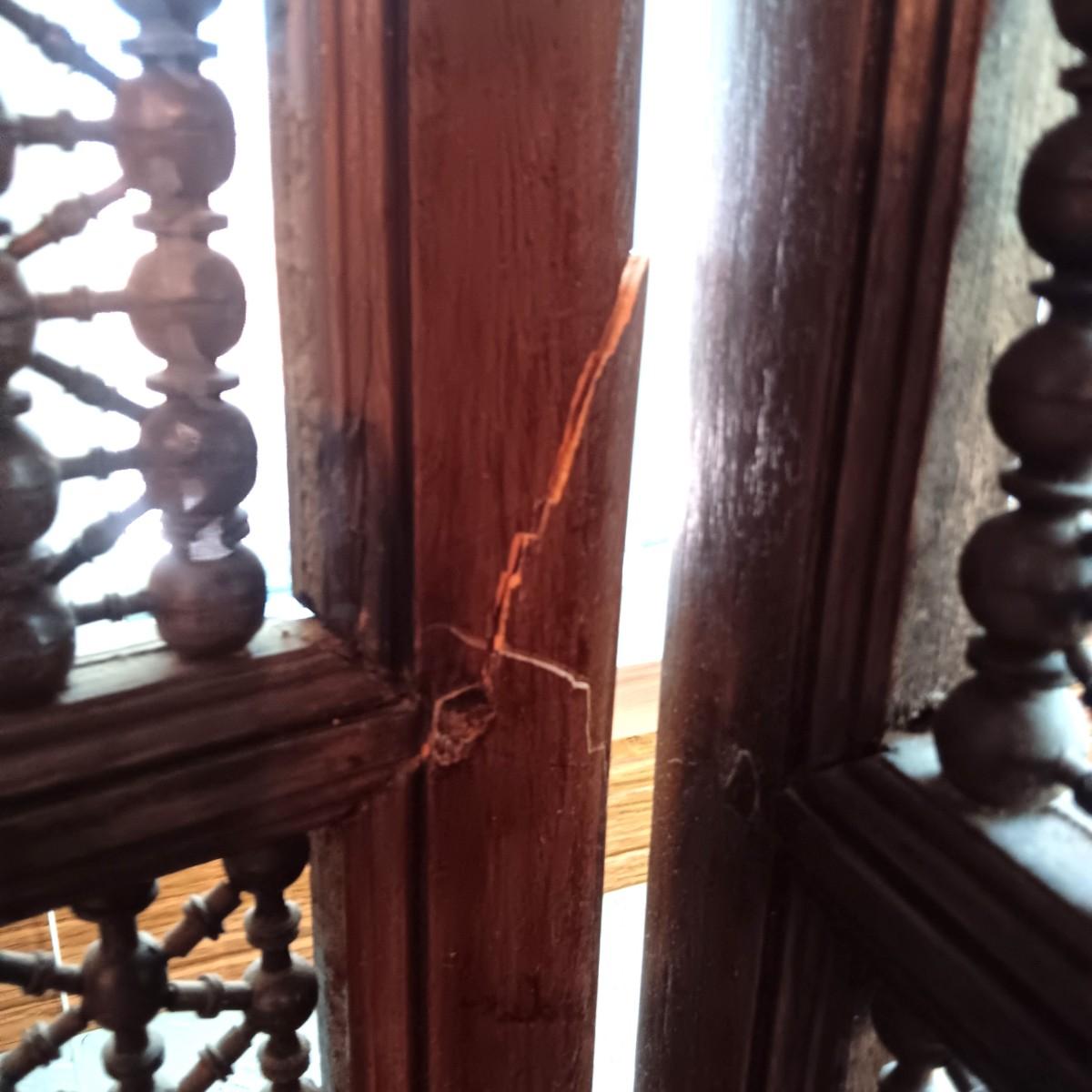 THE FRAME HAS SPLIT ON 1 SECTION (SEE PIC) AND THERE IS DAMAGE TO THE FRONT BOTTOM LEG IN 1 SECTION (SEE PIC) BOTH CAN BE FIXED