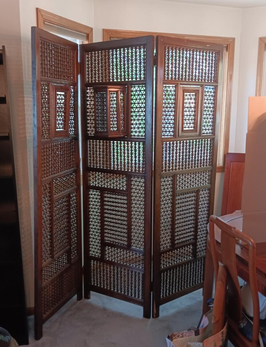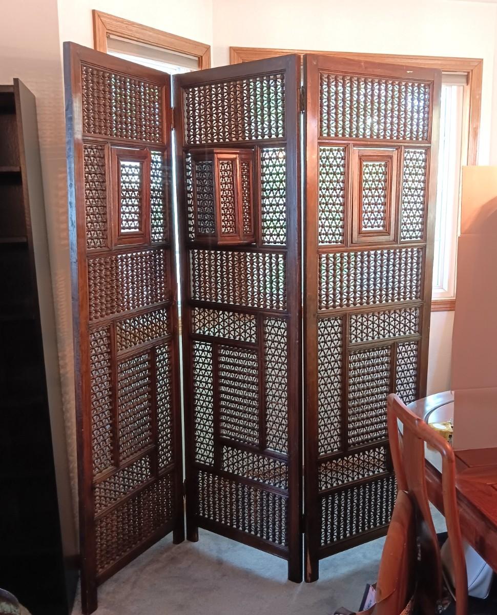 STUNNING WOODEN MIDDLE EASTERN 3 PANEL MASHRABIYA LATTICE FOLDING ROOM SCREEN