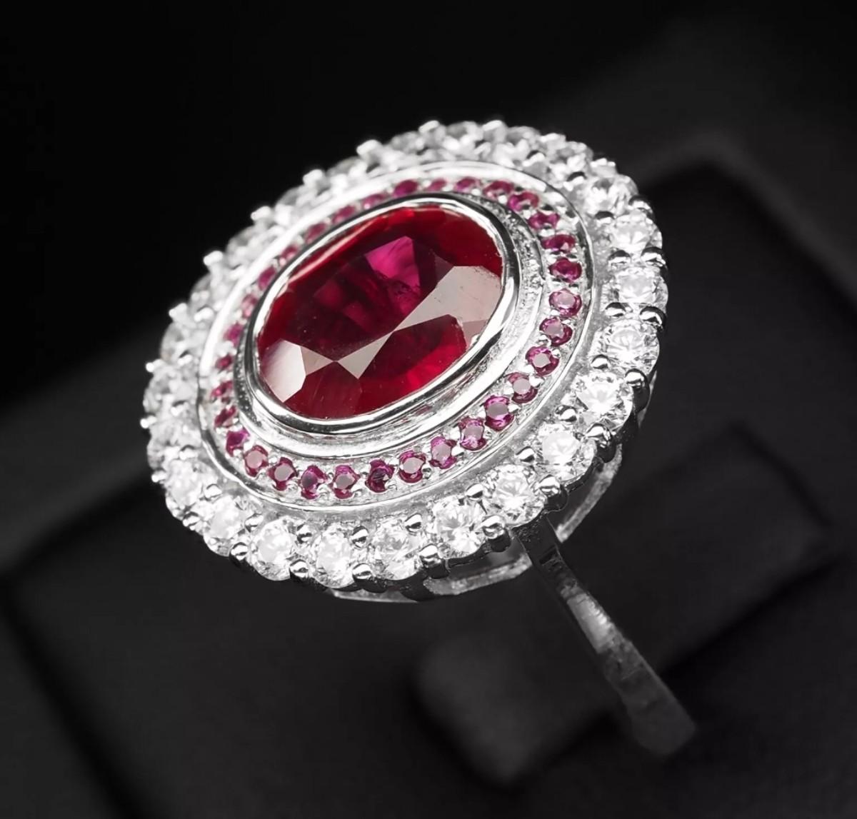 Stupendous Hot Red Ruby 3.10Ct 925 Sterling Silver White Gold Plated Bezel Ring