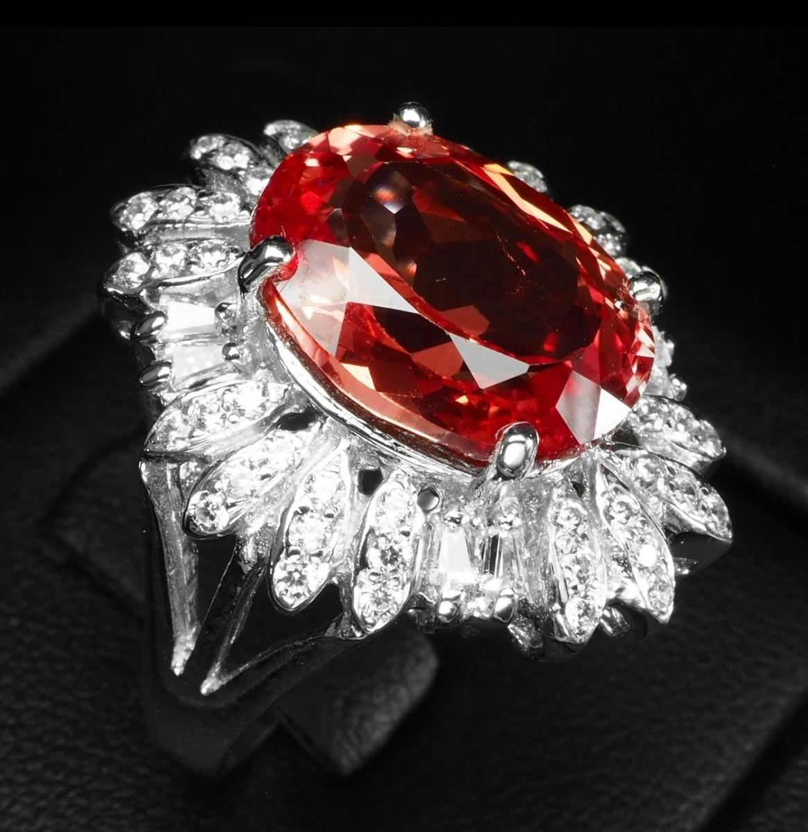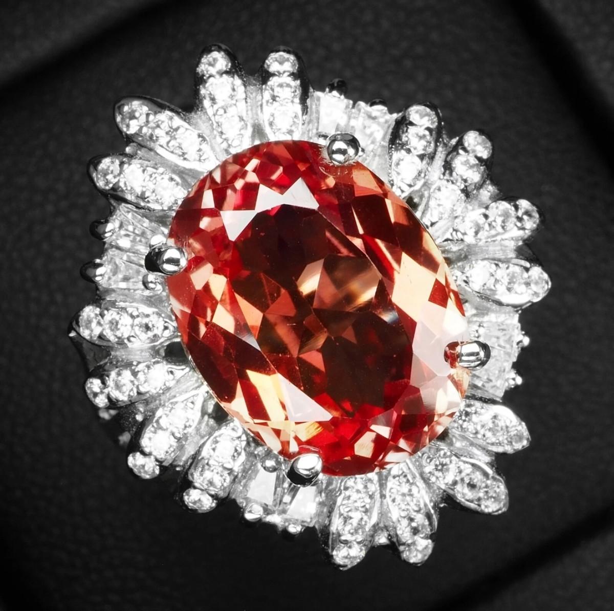 Stupendous Sunset Padparadscha Oval 8.25Ct 925 Sterling Silver Ring