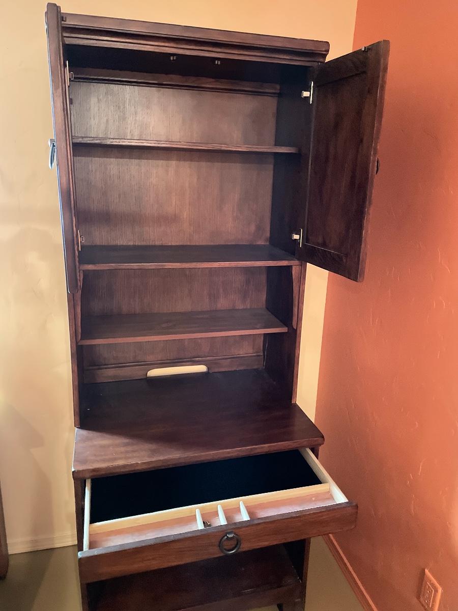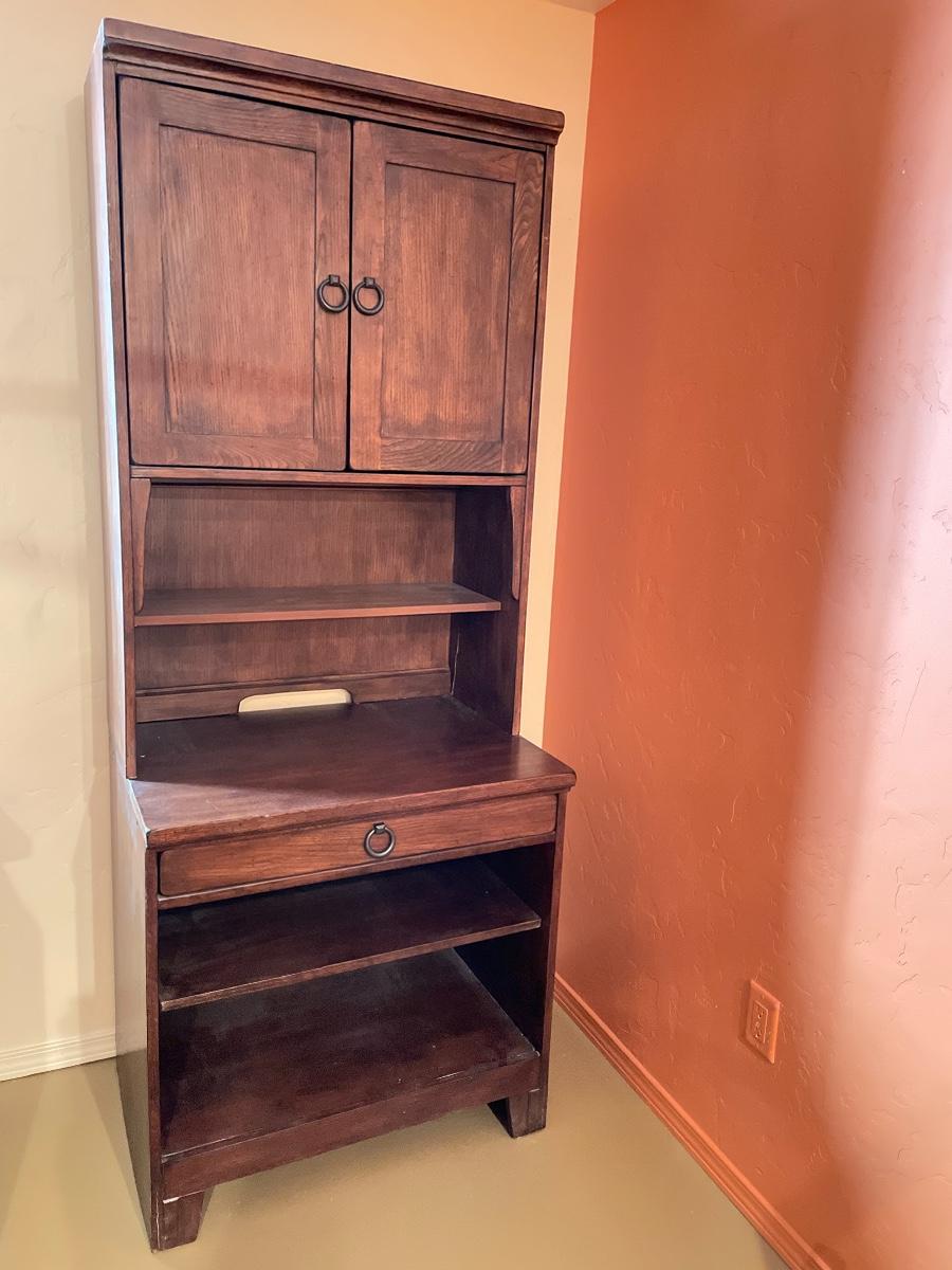 #365 Laminate Dark Wood Hutch Cabinet Shelf