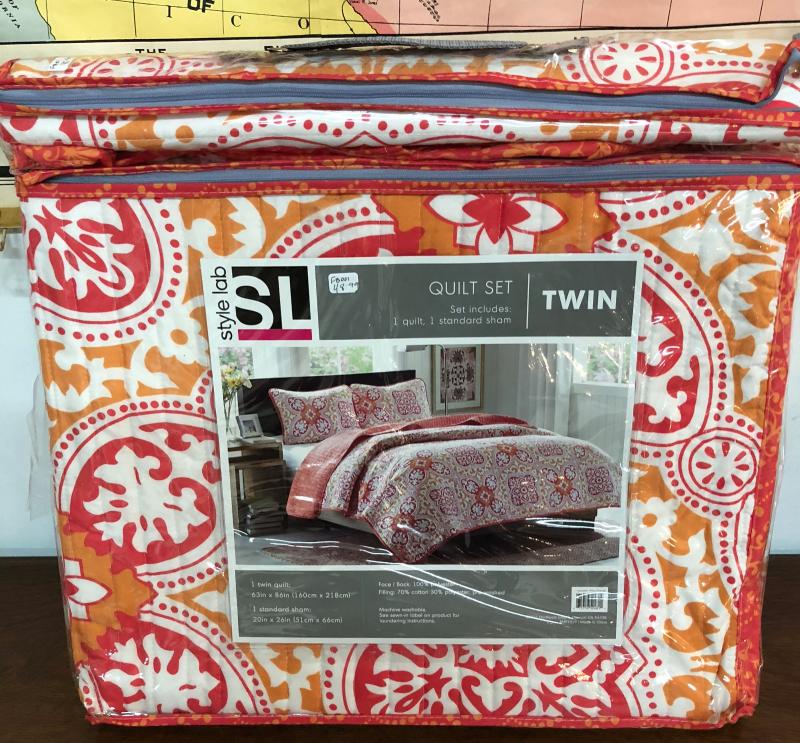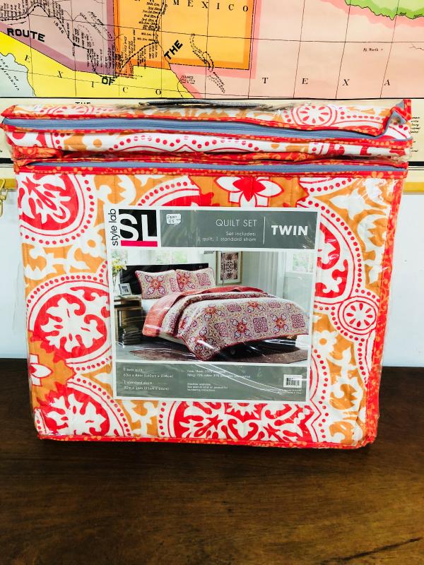 Twin size quilt set brand new in original packaging. If you need shipping please be aware that the cost of shipping may be more than what the item cost. All items ship from zip code 84109, you can go to USPS.com for estimates of cost.