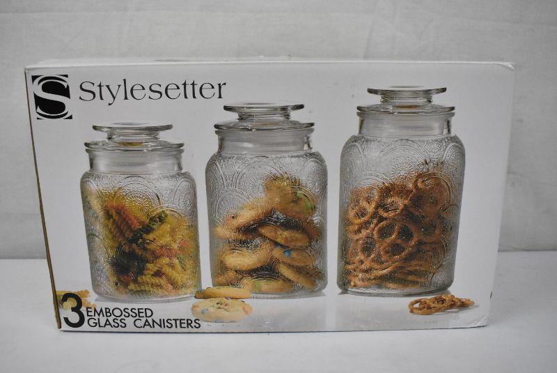 Stylesetter 3 Embossed Glass Canisters - New