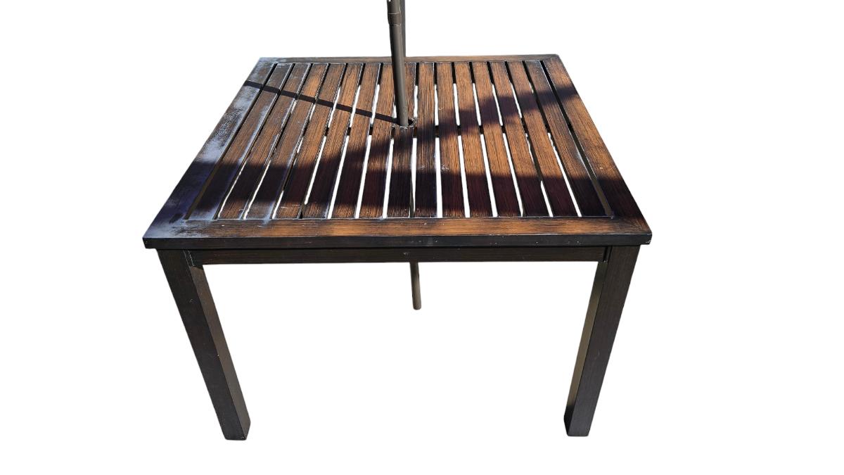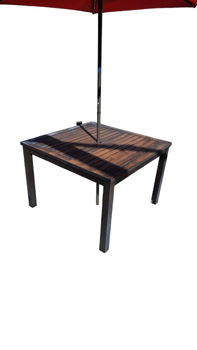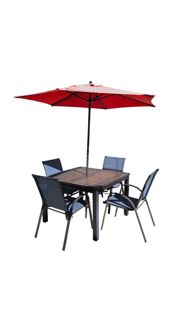 Umbrella is red, has some fade to it and has some stains as well - See Photos