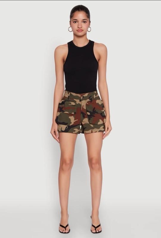 Stylish Camo Cargo Shorts with Stretch for Comfortable Fit - Olive Small