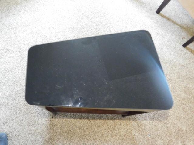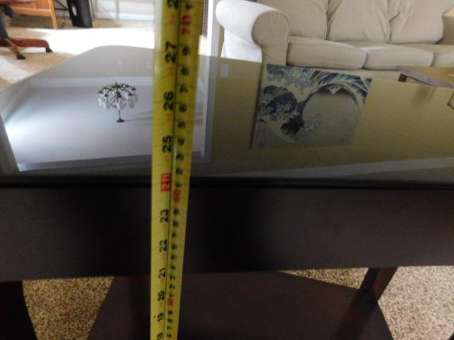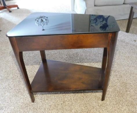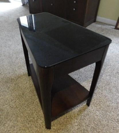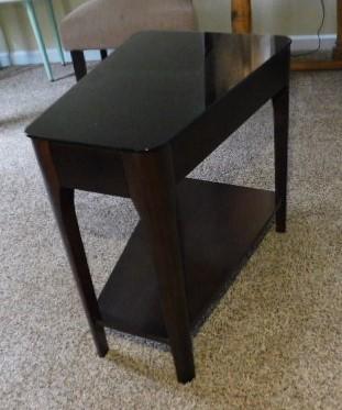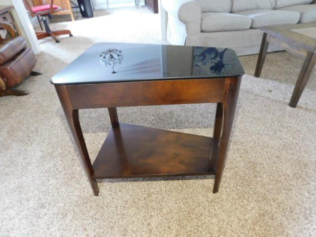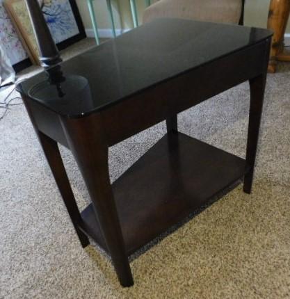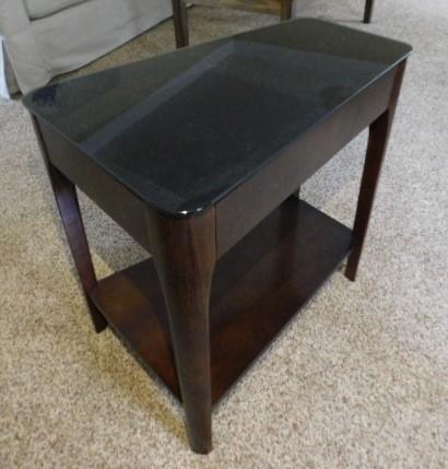 Mahogany Contemporary Side Table with Tapered Top (Glass Included) 24"x17"x24". Absolutely gorgeous piece. Solid and Stylish