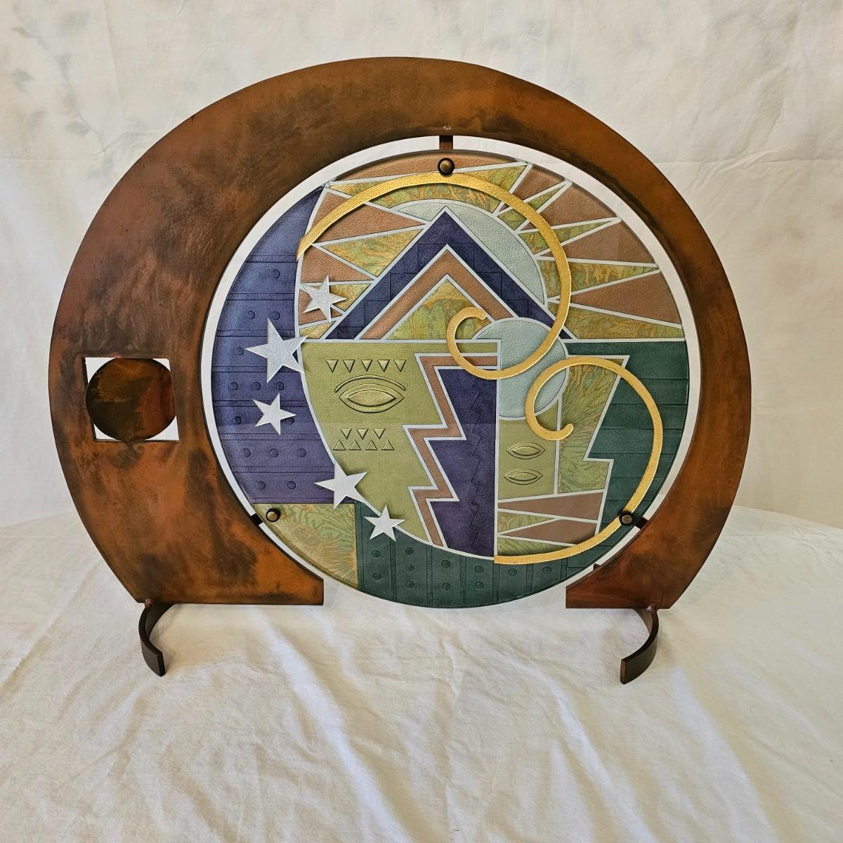 Stylized Steel & Glass Sun/Moon Sculpture (DR-JS)