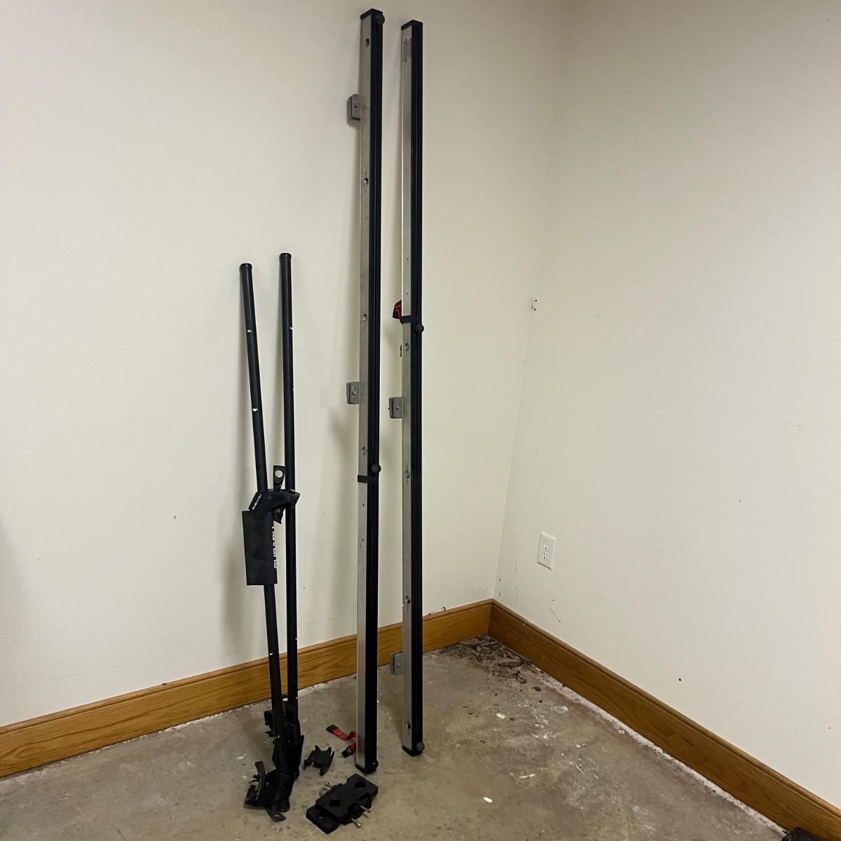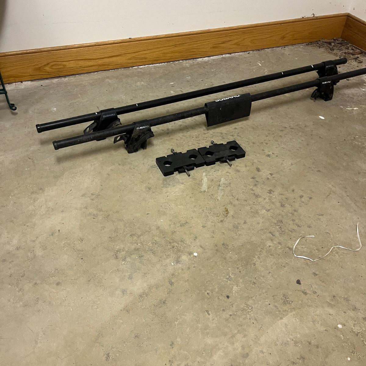 Lot includes two Subaru roof racks, two paddle holders and two kayak attachments for roof rack. Subaru racks measure 58” x 3” x 4.5”H and kayak racks measure 3.5” x 5” x 85” long.