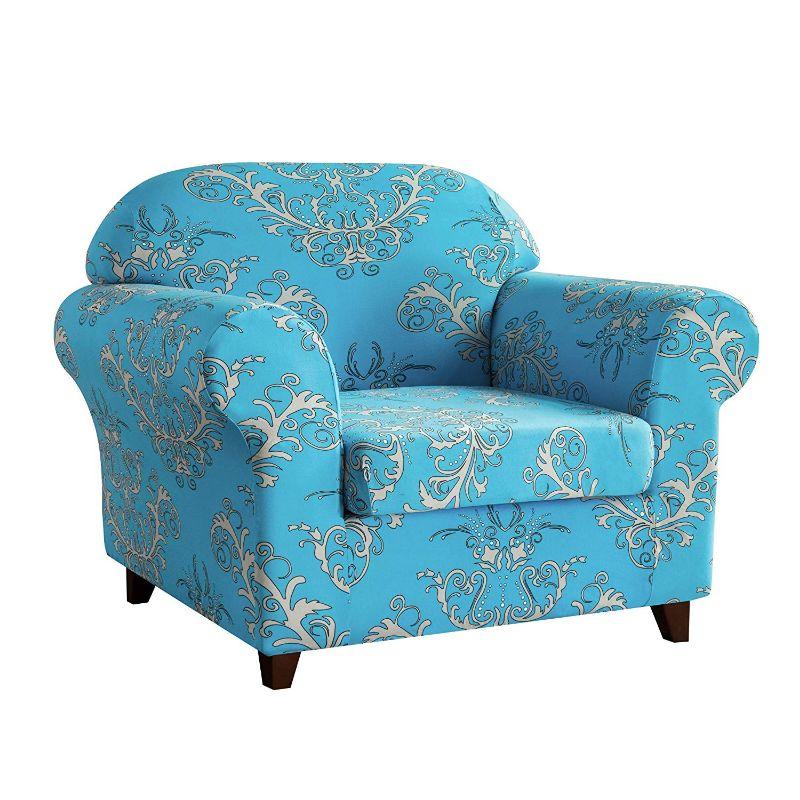 Subrtex Stretch 2-Piece Vector Floral Armchair Slipcover, Blue - New