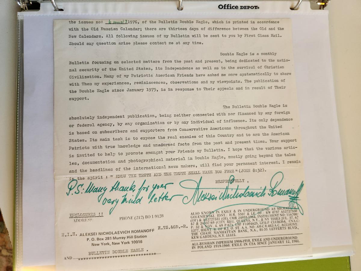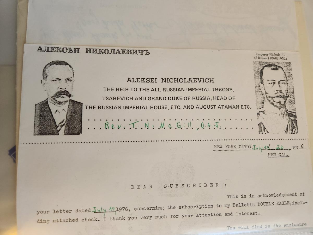 This auction lot is for a Subscription Form Signed by Aleksei Nicholaevich - the Heir to the All-Russian Imperial Throne and Grand Duke of Russia. Form is dated July 19, 1976. Might be a great piece of European history, or not!