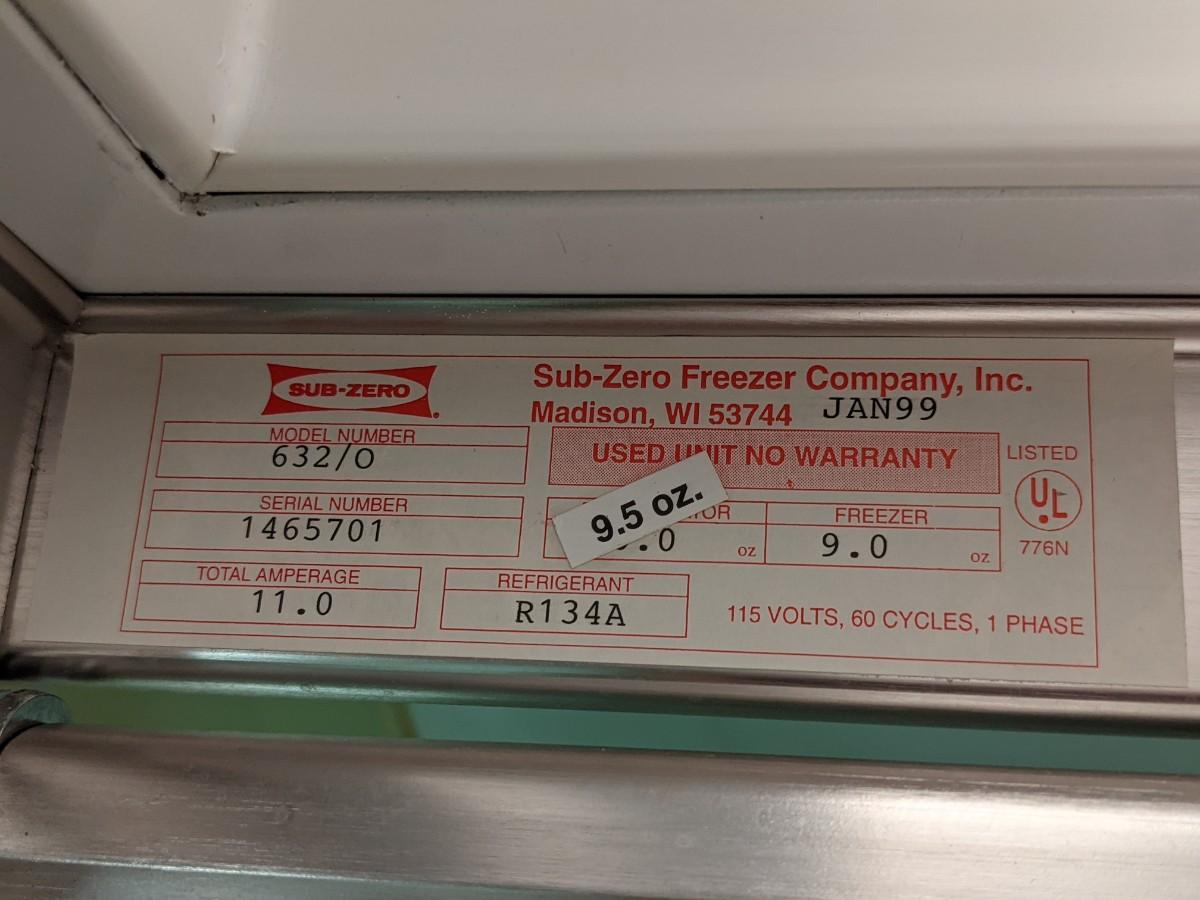 Sub-Zero 632 Refrigerator-Very clean, Exc Condition