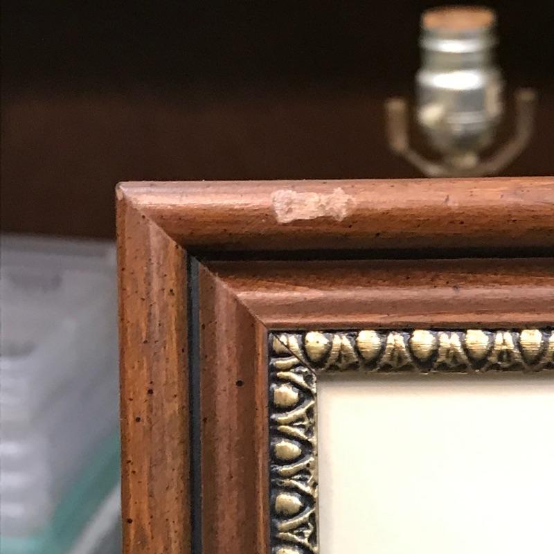 There is a small gash on the frame in the top left-hand corner, as well as another gash in the bottom right; see pictures. Measures 24 7/8“ x 21“.