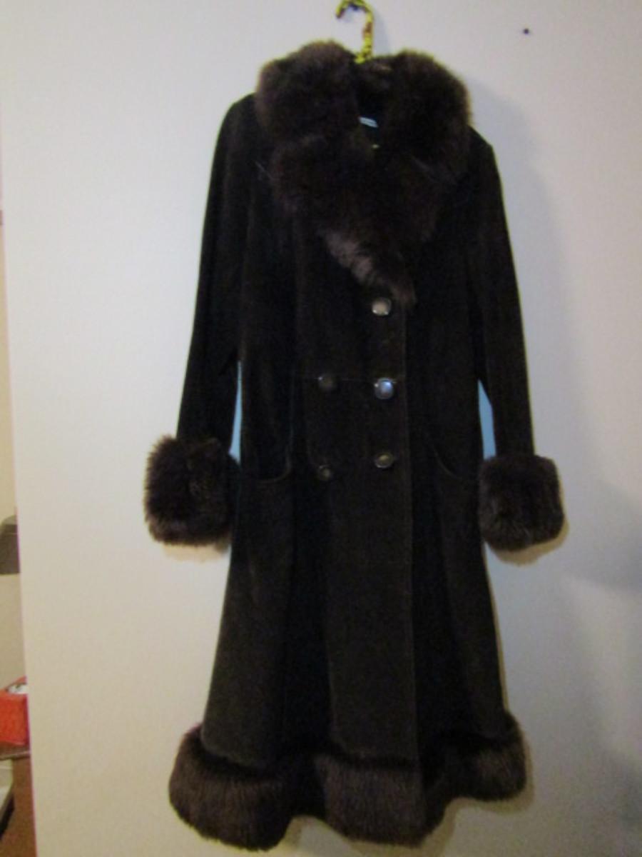 Suede Coat- Long Length- Made in Spain- Size 10